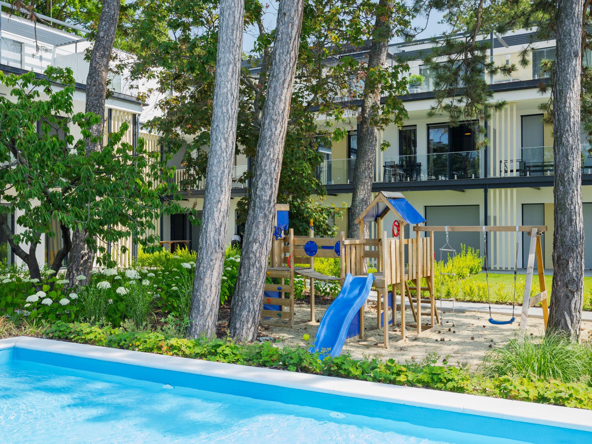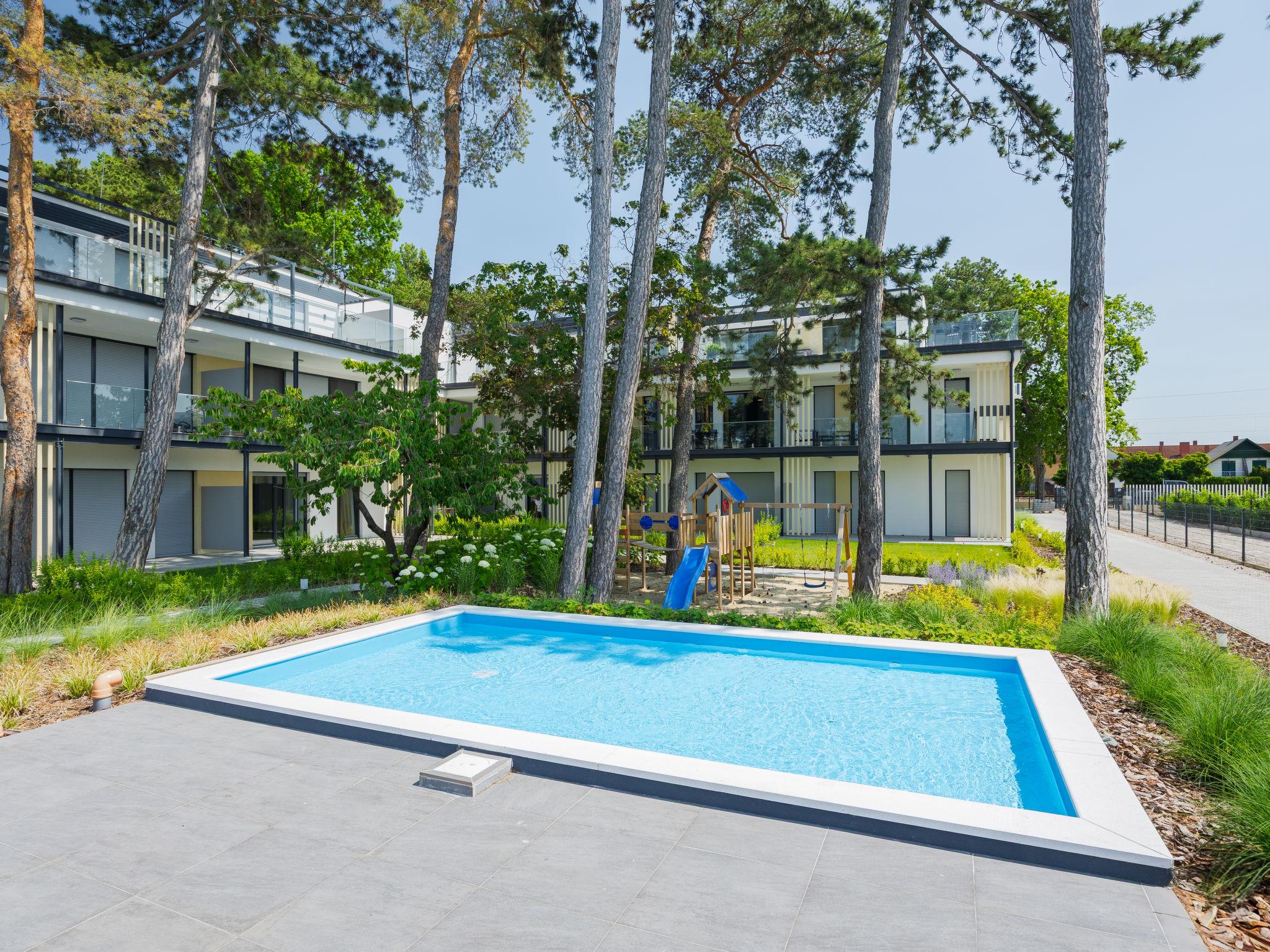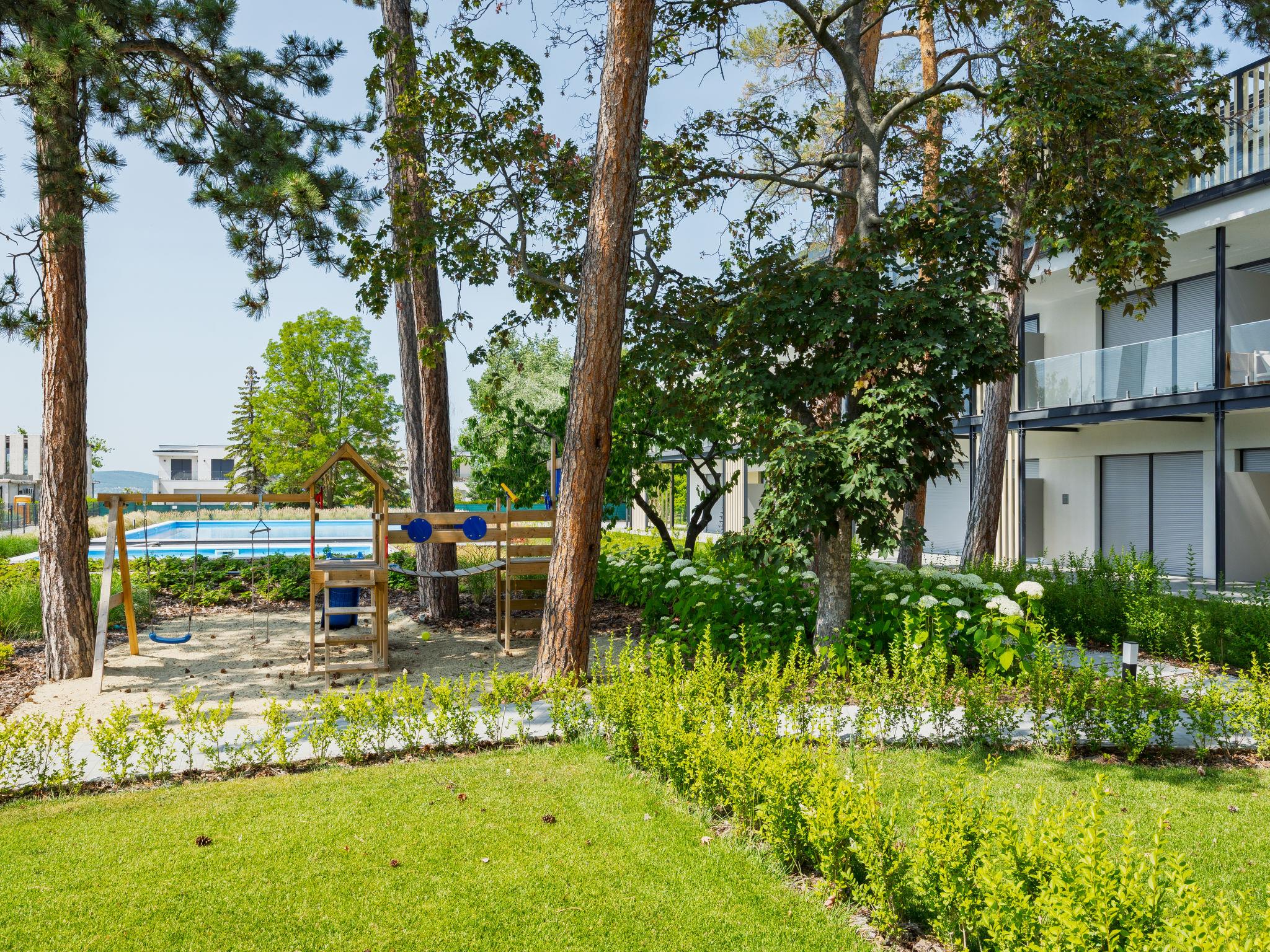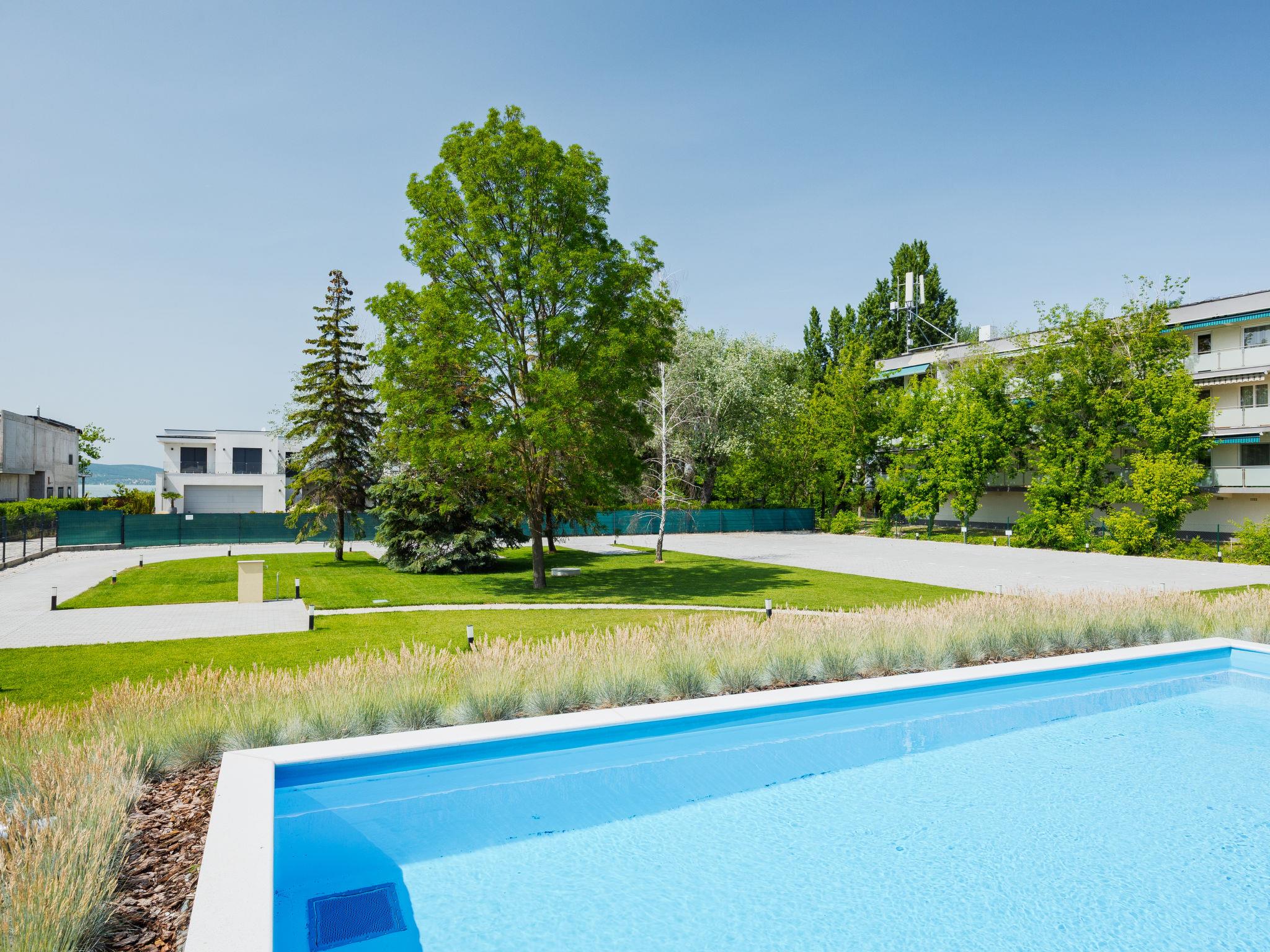 Balatonlelle: Modern, beautiful residence, 3 storeys, built in 2024. In a sunny position residential area (villas), 190 m from the lake, 450 m from the beach. For shared use: property (fenced), swimming pool angular (25 x 10 m, depth 150 - 150 cm, seasonal availability: 15.May. - 15.Sep.). Children's pool, children's playground (slide, swing). In the house: WiFi, central heating system, air conditioning. Parking on the premises. Grocery 400 m, supermarket 1.4 km, restaurant 450 m, railway station "Balatonlelle Felso" 550 m, thermal baths "Igal" 42 m. Tennis 2 km, riding stable 6 km, cycle lane 20 m. Nearby attractions: Rádpuszta vineyard 7 km, Balatonlelle Ferris wheel 2 km, Siófok Zoo 44 km, Zamárdi Adventure Park 31 km, Hévíz Thermal Bath 63 km. Please note: baby equipment on request (extra). The owner does not accept any youth groups. Guarded residence.