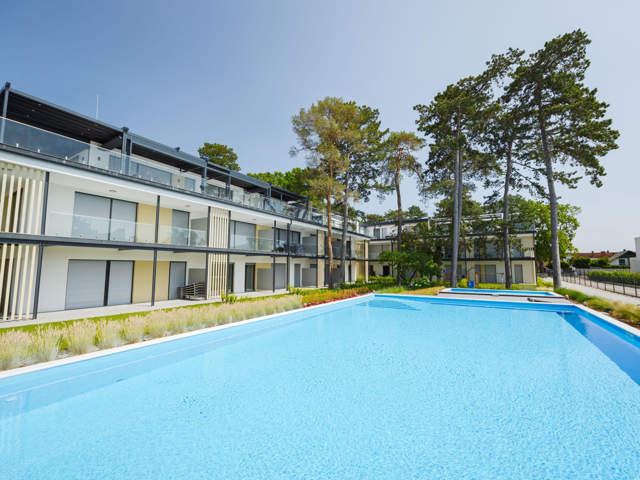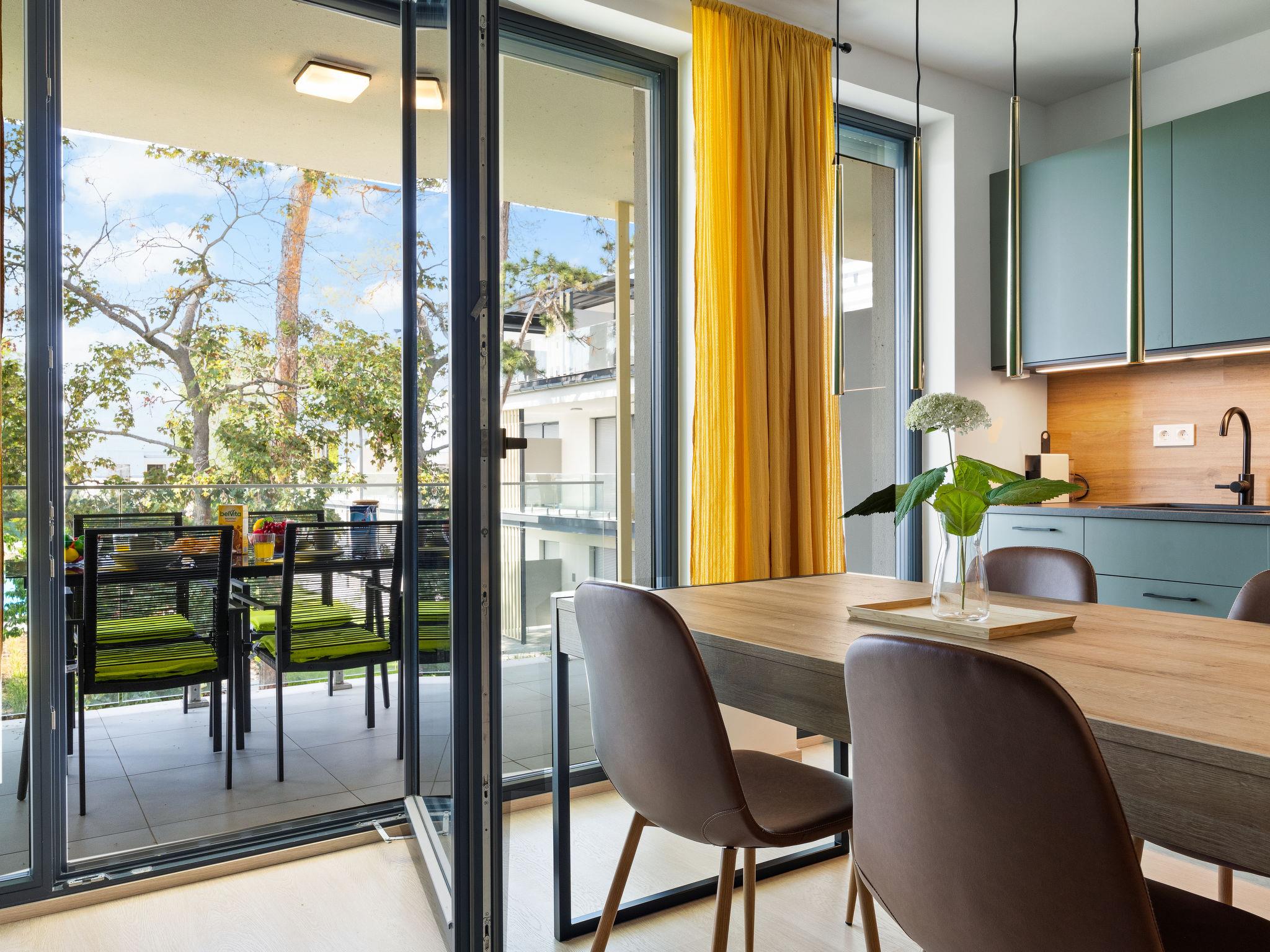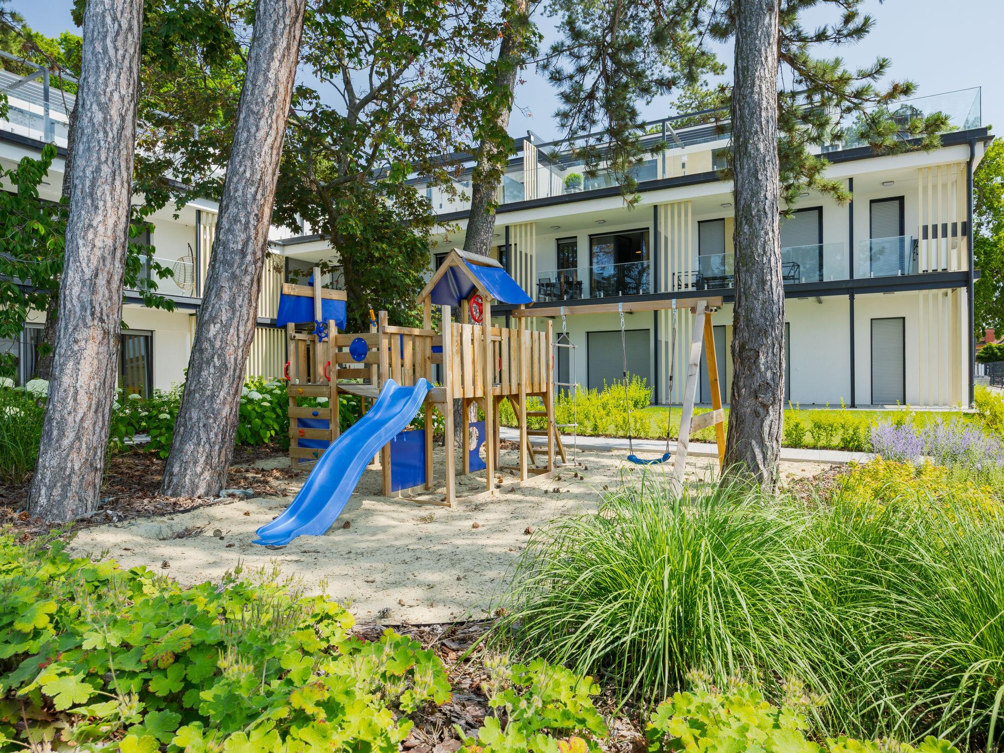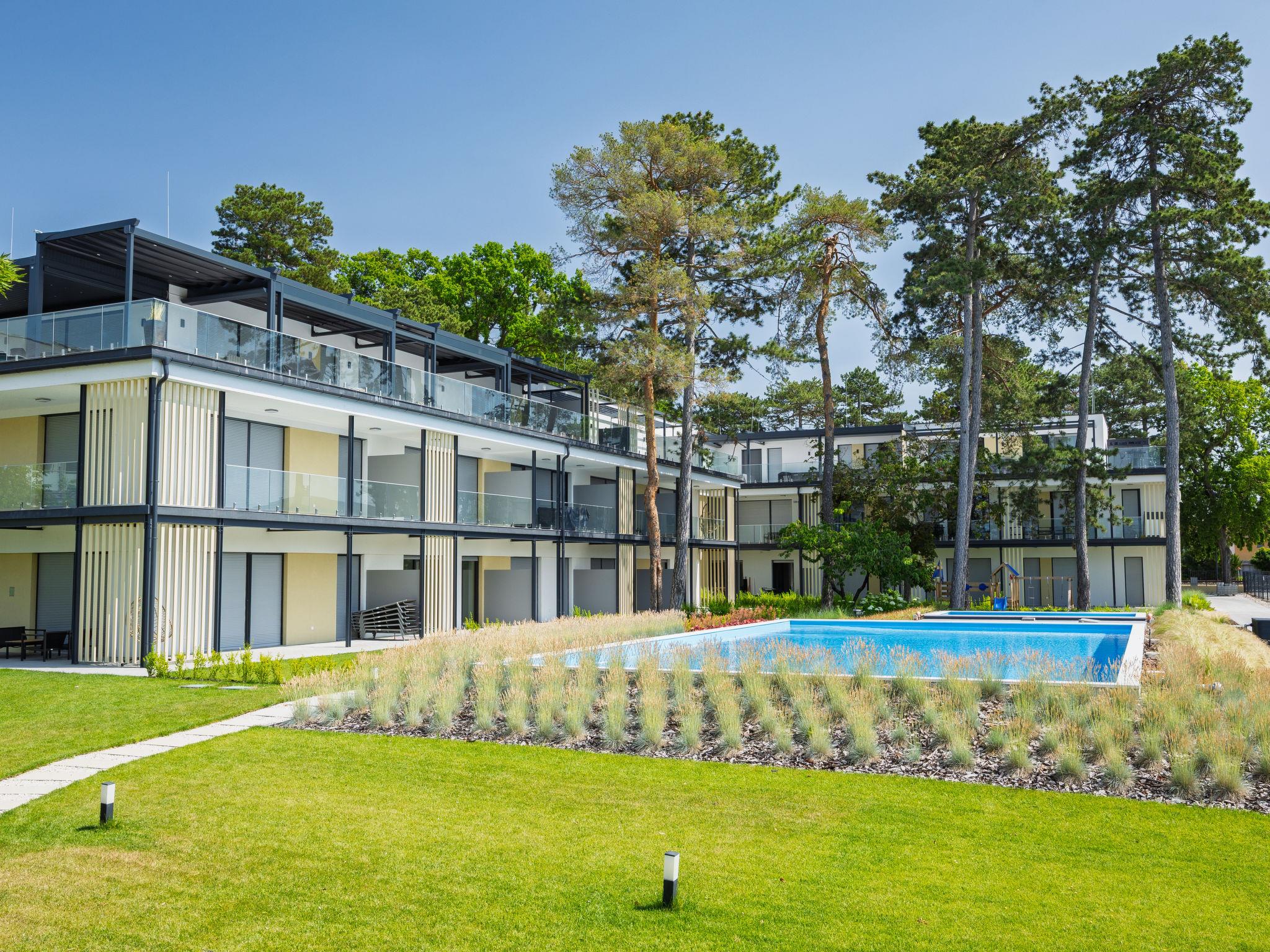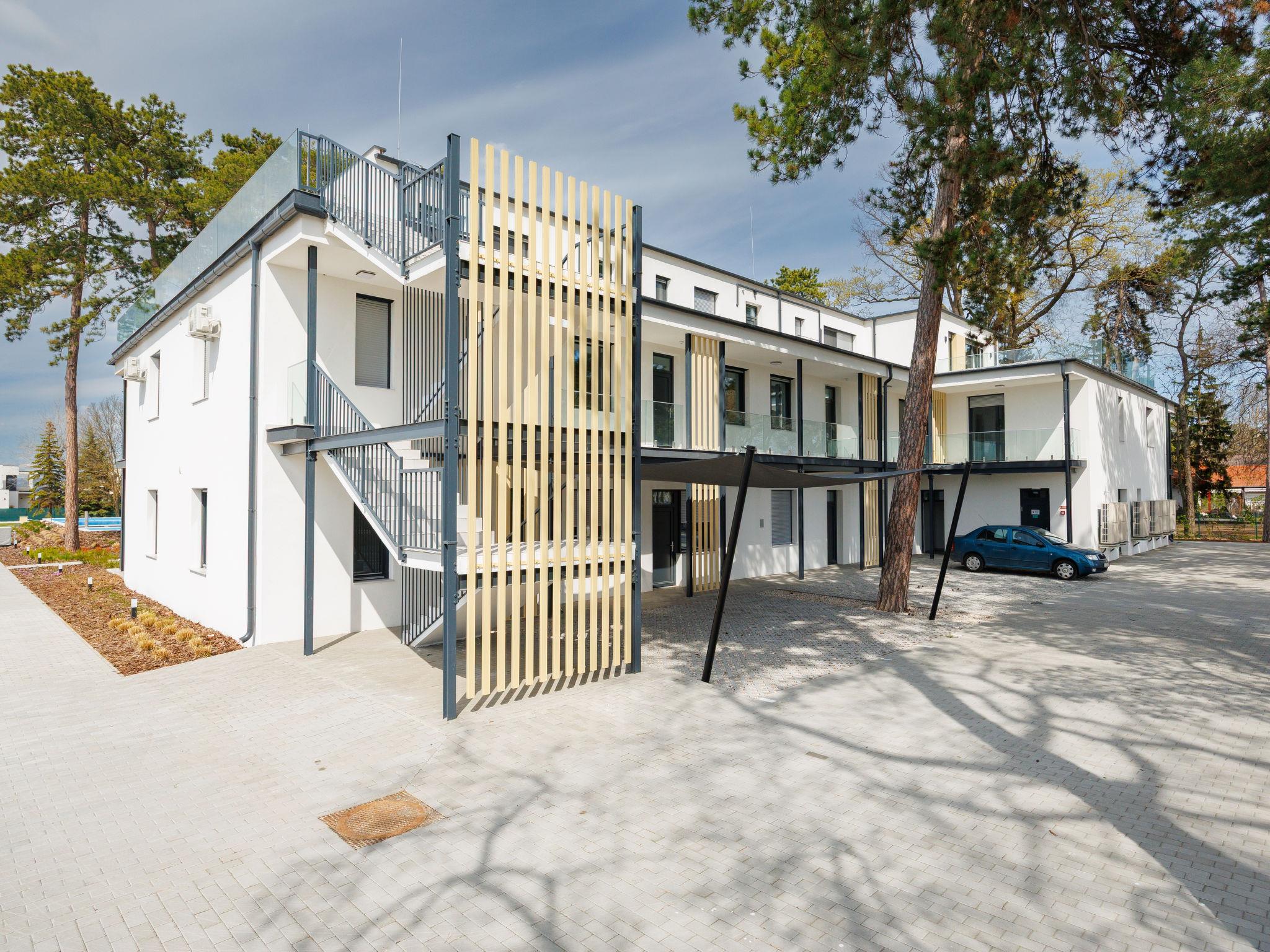 Balatonlelle: Modern, beautiful residence, 3 storeys, built in 2024. In a sunny position residential area (villas), 190 m from the lake, 450 m from the beach. For shared use: property (fenced), swimming pool angular (25 x 10 m, depth 150 - 150 cm, seasonal availability: 15.May. - 15.Sep.). Children's pool, children's playground (slide, swing). In the house: WiFi, central heating system, air conditioning. Parking on the premises. Grocery 400 m, supermarket 1.4 km, restaurant 450 m, railway station "Balatonlelle Felso" 550 m, thermal baths "Igal" 42 m. Tennis 2 km, riding stable 6 km, cycle lane 20 m. Nearby attractions: Rádpuszta vineyard 7 km, Balatonlelle Ferris wheel 2 km, Siófok Zoo 44 km, Zamárdi Adventure Park 31 km, Hévíz Thermal Bath 63 km. Please note: baby equipment on request (extra). The owner does not accept any youth groups. Guarded residence.