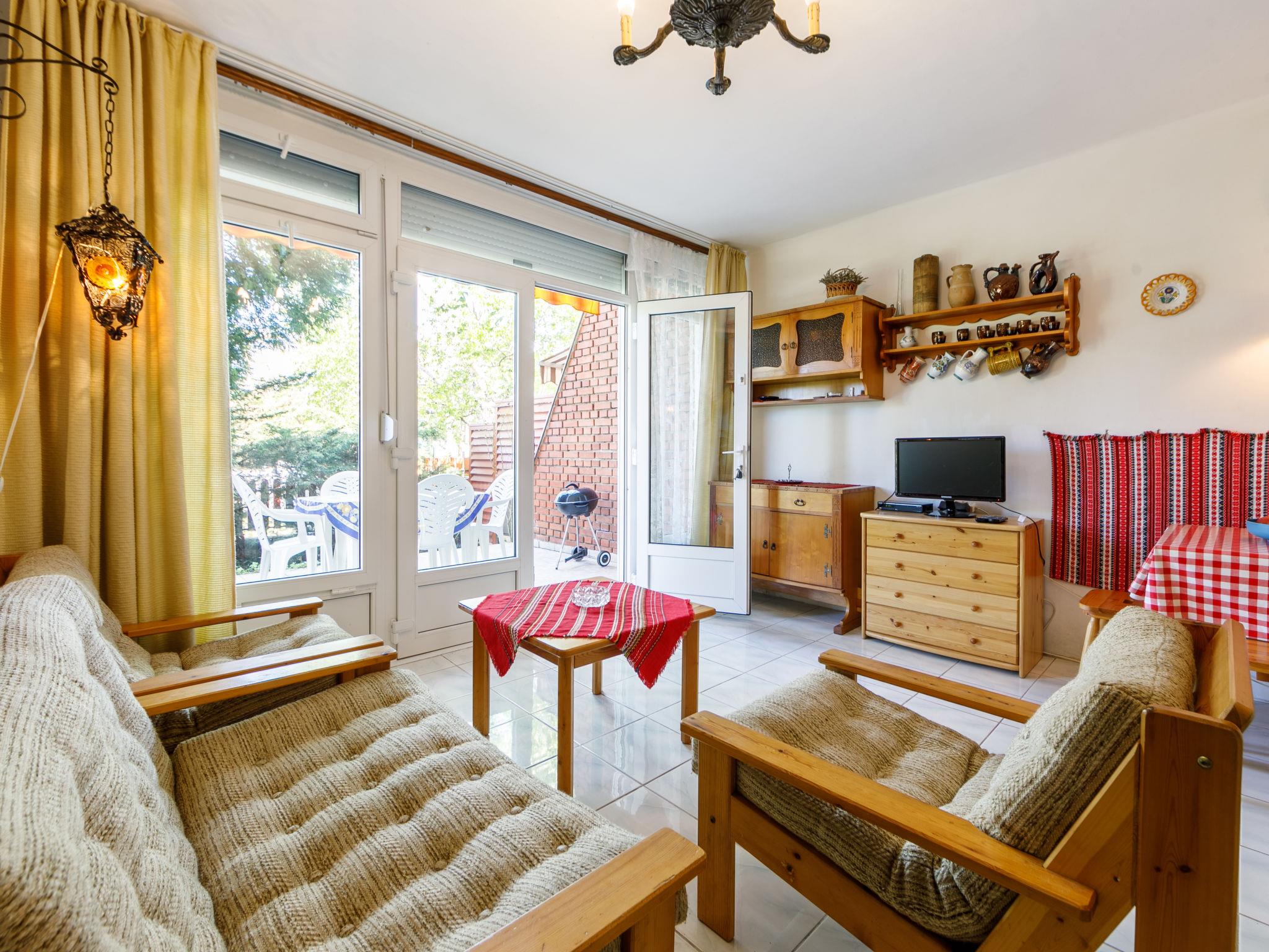 3-room semi-detached house 56 m2. Practical furnishings: living room with satellite TV. Exit to the terrace. Open kitchen (2 hot plates). Bath/WC. No heating option. Upper floor: 1 room with 2 beds. 1 room with 2 beds and air conditioning. Exit to the balcony. Sep. WC. Balcony 6 m2, terrace 10 m2. Barbecue (portable), deck chairs (2). Parking (fenced 2 cars). Maximum 1 pet/ dog allowed.