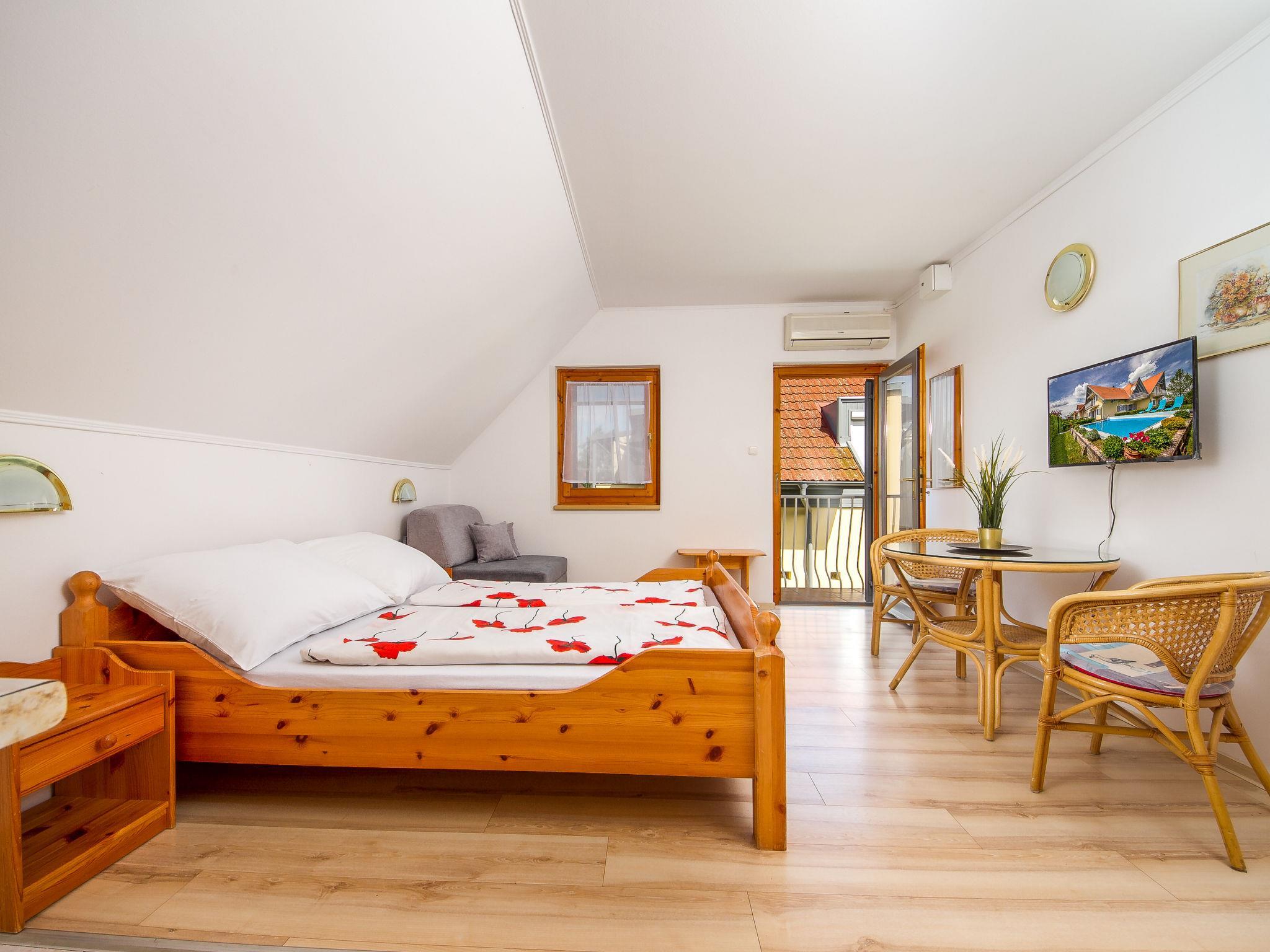 Balatonmáriafürdo 18 km from Keszthely: Apartment house. In a sunny position, 270 m from the lake, 260 m from the beach. For shared use: well-kept garden (fenced), lawn for sunbathing, swimming pool angular (7 x 4 m, depth 120 cm, seasonal availability: 01.May. - 01.Oct.) with internal staircase. Table tennis, patio, garden furniture, barbecue (swing). In the house: WiFi, air conditioning (extra). Grocery 1 km, supermarket 6 km, restaurant 180 m, bakery 1.5 km, café 800 m, bicycle rental 4 km, railway station 1 km, grass beach 100 m, thermal baths "Csiszta" 15 km. Surf school 8 km, sailing school 1 km, tennis 2 km, riding stable 700 m, cycle lane 50 m, children's playground 600 m, fishing possibilities 100 m. Nearby attractions: Hévíz Thermal Bath 20 km, Festetics palace 20 km, Rubin Winery 5 km, Airport 2 km, Somosgegyi Viewpoint 7 km, Siófok - Ferris Wheels 62 km. Please note: Additional accommodations can be booked.