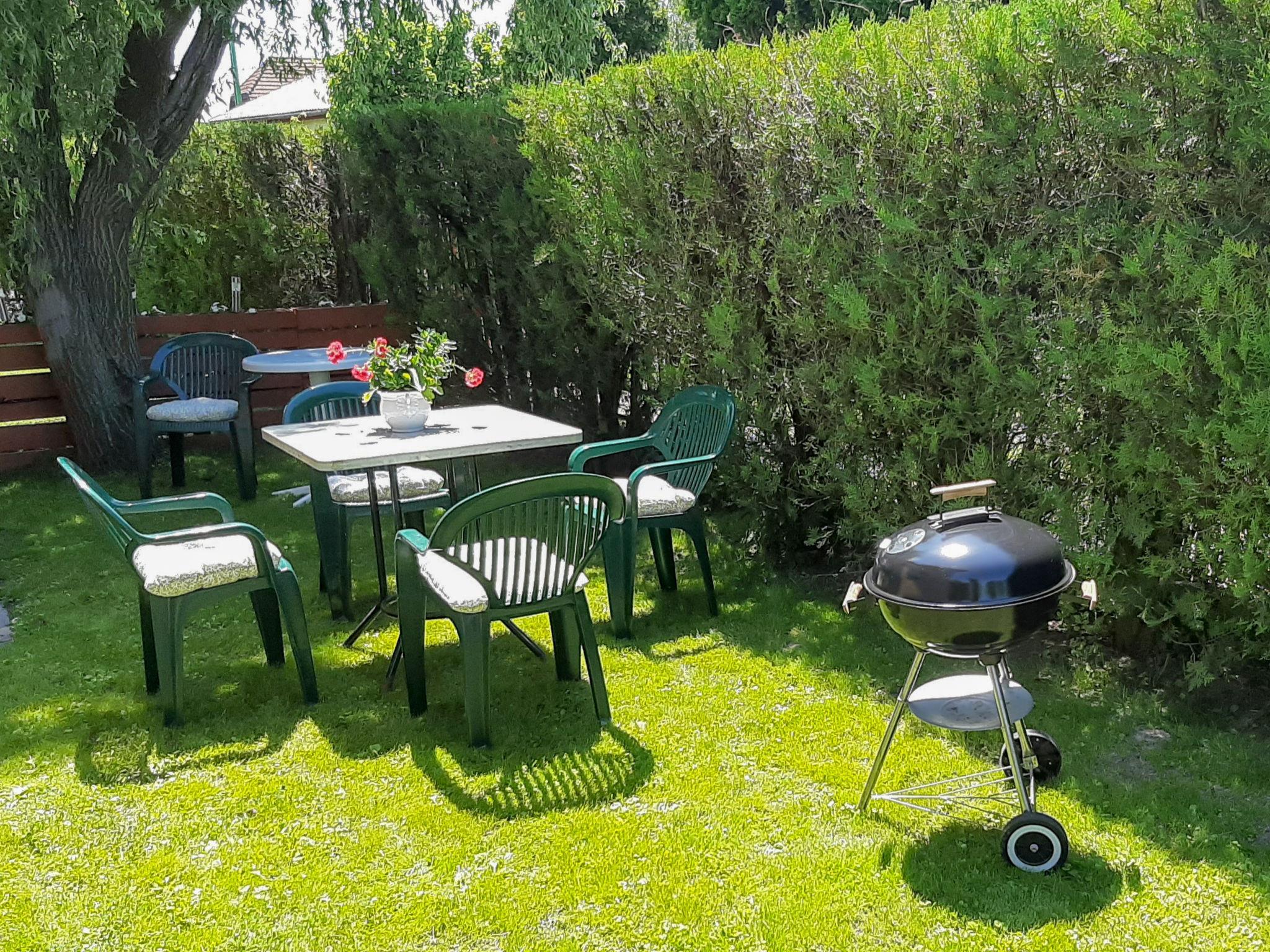 Balatonmáriafürdo 19 km from Keszthely: Cosy 2-family house, 2 storeys. In the resort, 200 m from the lake, 200 m from the beach. Private: garden 100 m2 (fenced) with lawn. In the house: WiFi. Shop 650 m, restaurant 250 m, railway station 1.5 km, grass beach 450 m.