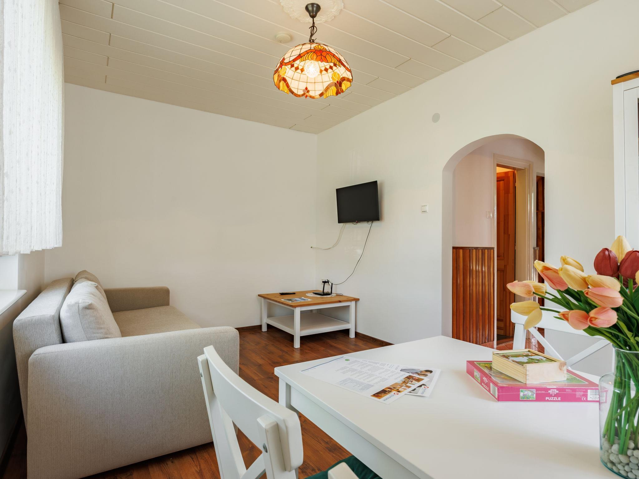 2-room house on 2 levels. Spacious, comfortable and cosy furnishings: living/dining room with 1 double sofabed, dining table and cable TV (flat screen). Large kitchen (oven, Gas stove, 4 gas rings, toaster, kettle, microwave, freezer, electric coffee machine). Upper floor: 1 double bedroom with 1 french bed (160 cm, length 200 cm). Bath/shower/WC with corner bath. No heating option. Small balcony, north-west facing position, large terrace, south-east facing position. Terrace furniture, balcony furniture, barbecue (portable). Partial view of the lake. Facilities: mosquito net. Internet (WiFi). Parking (roofed, 1 car). Please note: non-smoking house. MA24096785