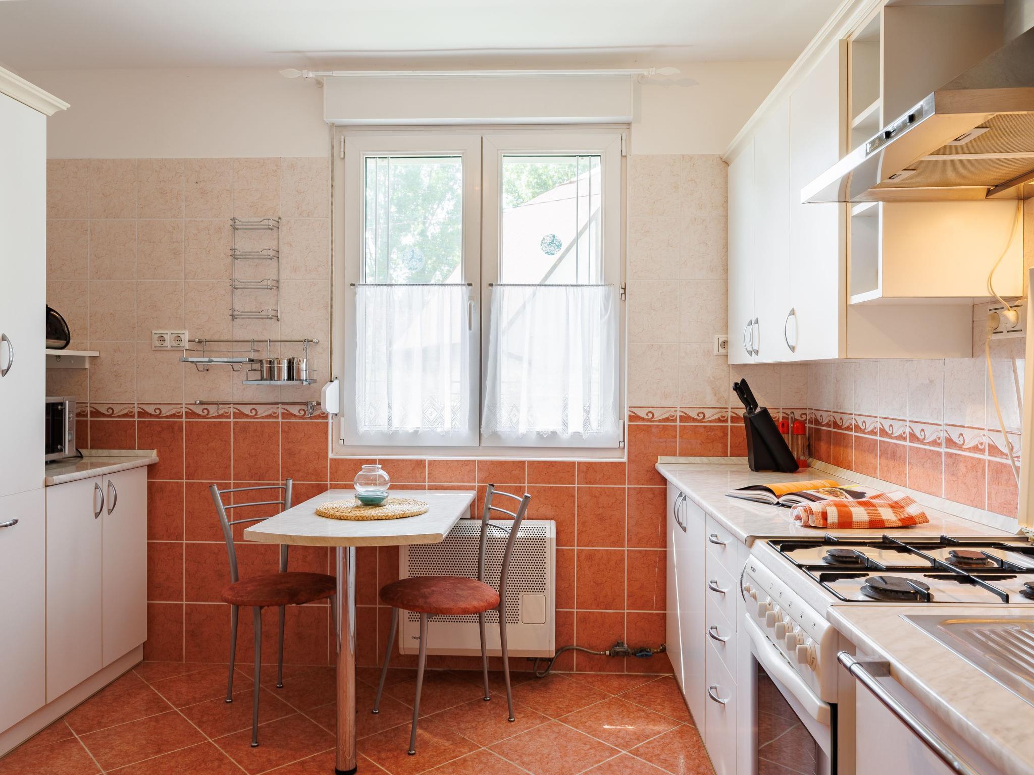 Balatonmáriafürdo 21 km from Keszthely: Small, cosy house "Green House", 2 storeys. In the resort, 500 m from the centre, in a sunny position in the residential district, 150 m from the lake, 100 m from the beach. Private: property (fenced), lawn for sunbathing. Terrace, garden furniture, barbecue. In the house: WiFi. Roofed, parking on the premises. Grocery 850 m, restaurant 200 m, bicycle rental 8 km, railway station 800 m, thermal baths "Hévíz" 25 km. Tennis 1.6 km, children's playground 230 m. Nearby attractions: Kis-Balaton Visitor Center 15 km, Festetics Nature House visitor center 27 km, Keszthely Giant Wheel 21 km, Festetics Castle 21 km, Kristinus Wine Estate 9 km, Bobo Fun Park 26 km.