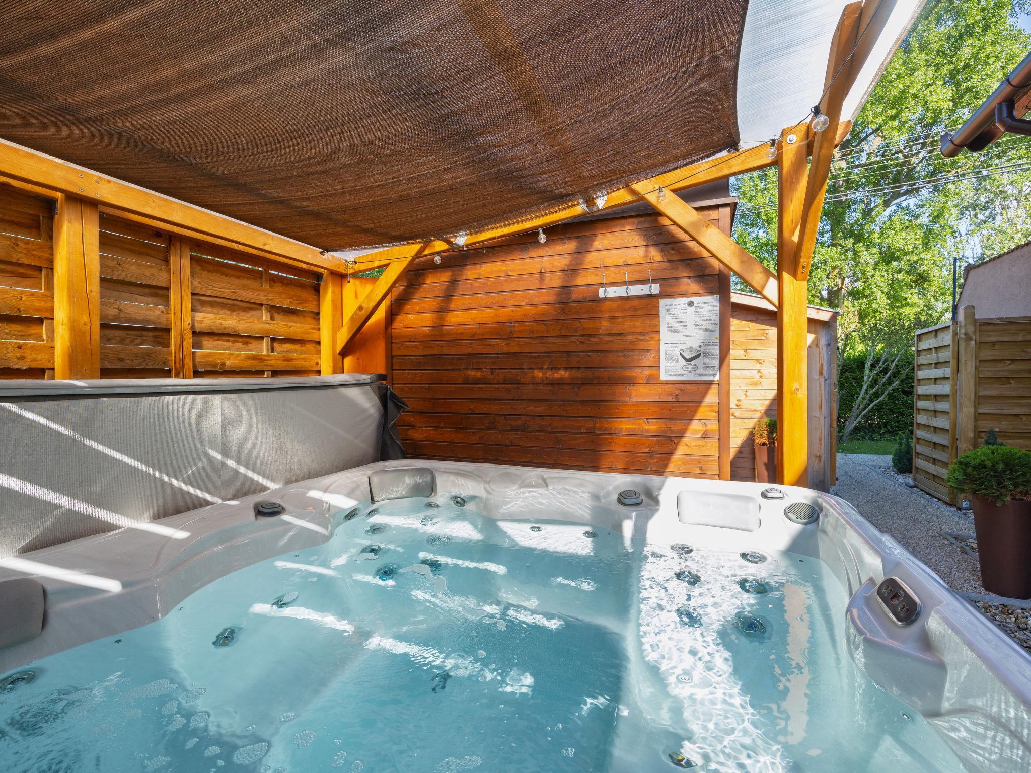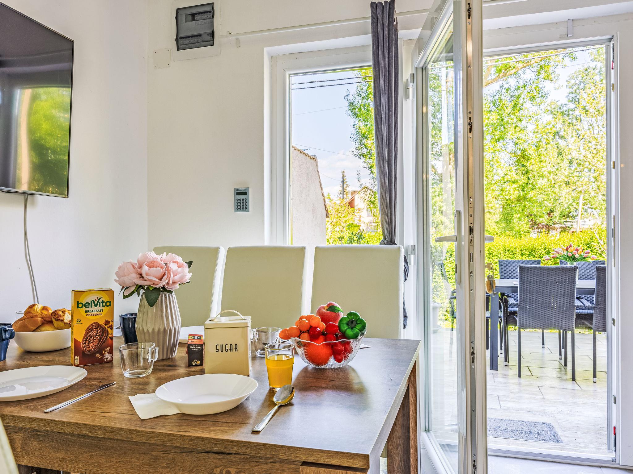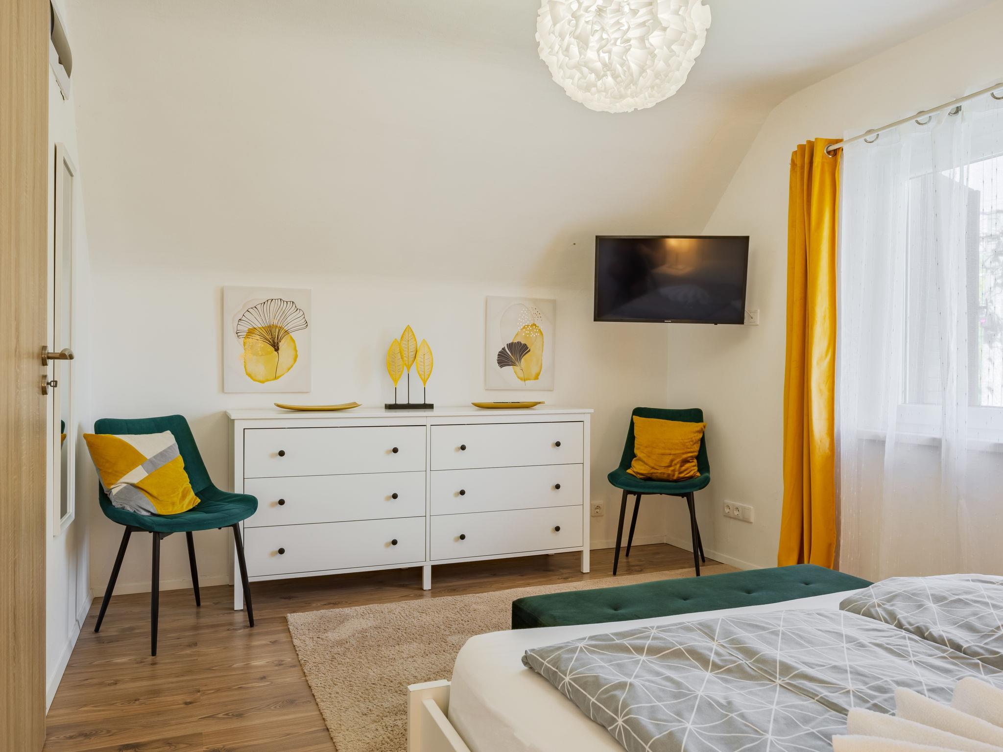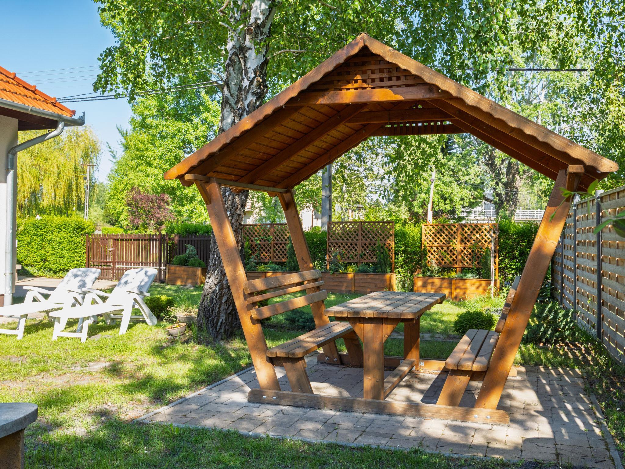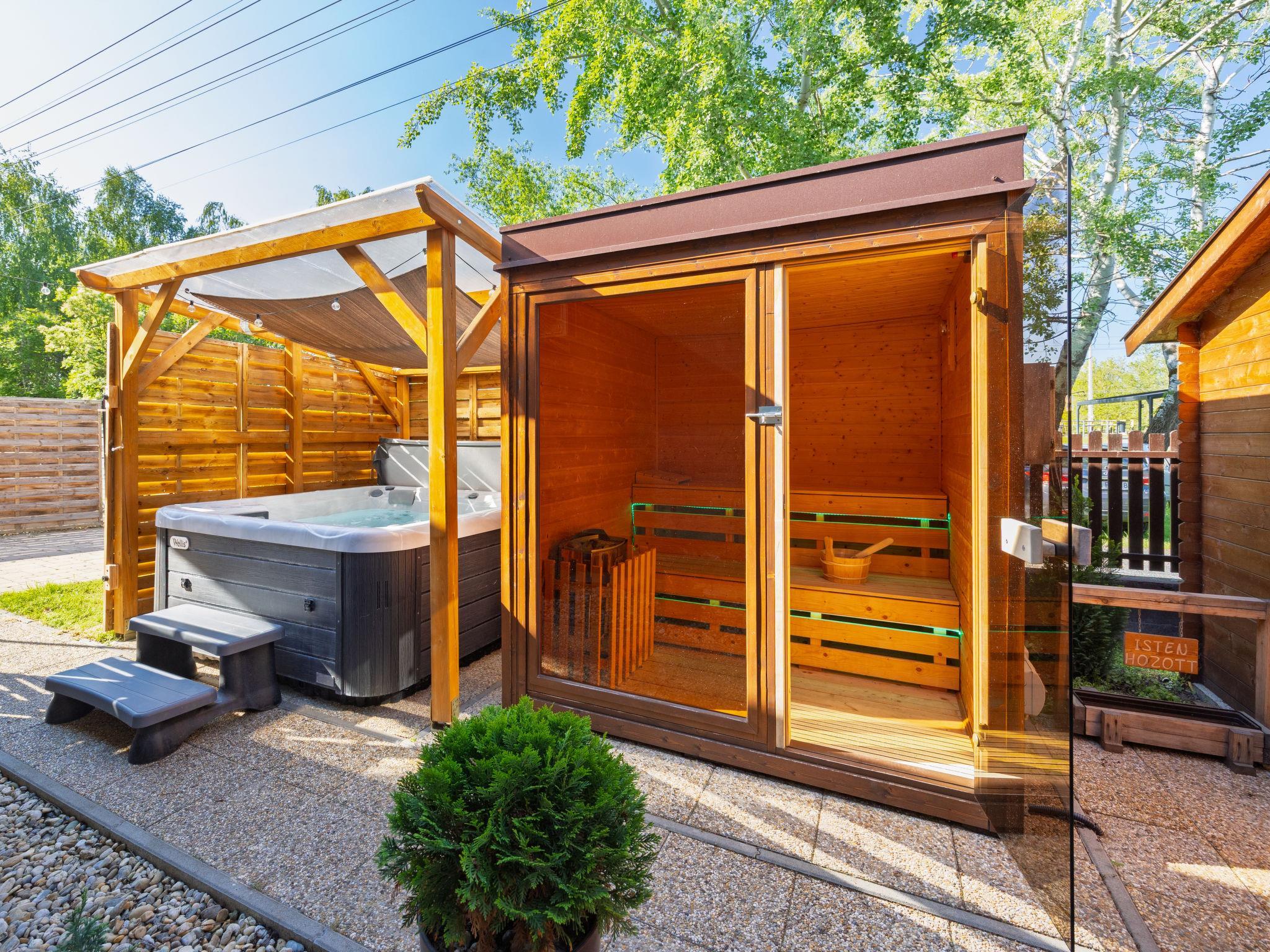 Balatonmáriafürdo 21 km from Balatonfenyves: Modern, comfortable house "Iris", 2 storeys in 2024. In the resort, 150 m from the lake, 100 m from the beach. For shared use: hot tub. Private: property (fenced), garden with lawn and trees. Outdoor shower, barbecue, fireplace. In the house: WiFi, air conditioning. Parking (for 2 cars). Grocery 160 m, restaurant 130 m, railway station "Máriaszolotelep" 160 m, thermal baths "Igal" 69 km. Tennis 4 km, riding stable 6 km, cycle lane 100 m, children's playground 1 km. Nearby attractions: Kis-Balaton Visitor Center 16 km, Hévíz Thermal Bath 28 km, Keszthely Giant Wheel 22 km, Festetics Castle 23 km, Kristinus Wine Estate 11 km, Zalacsány Adventure Park 34 km. Please note: railway line closeby.