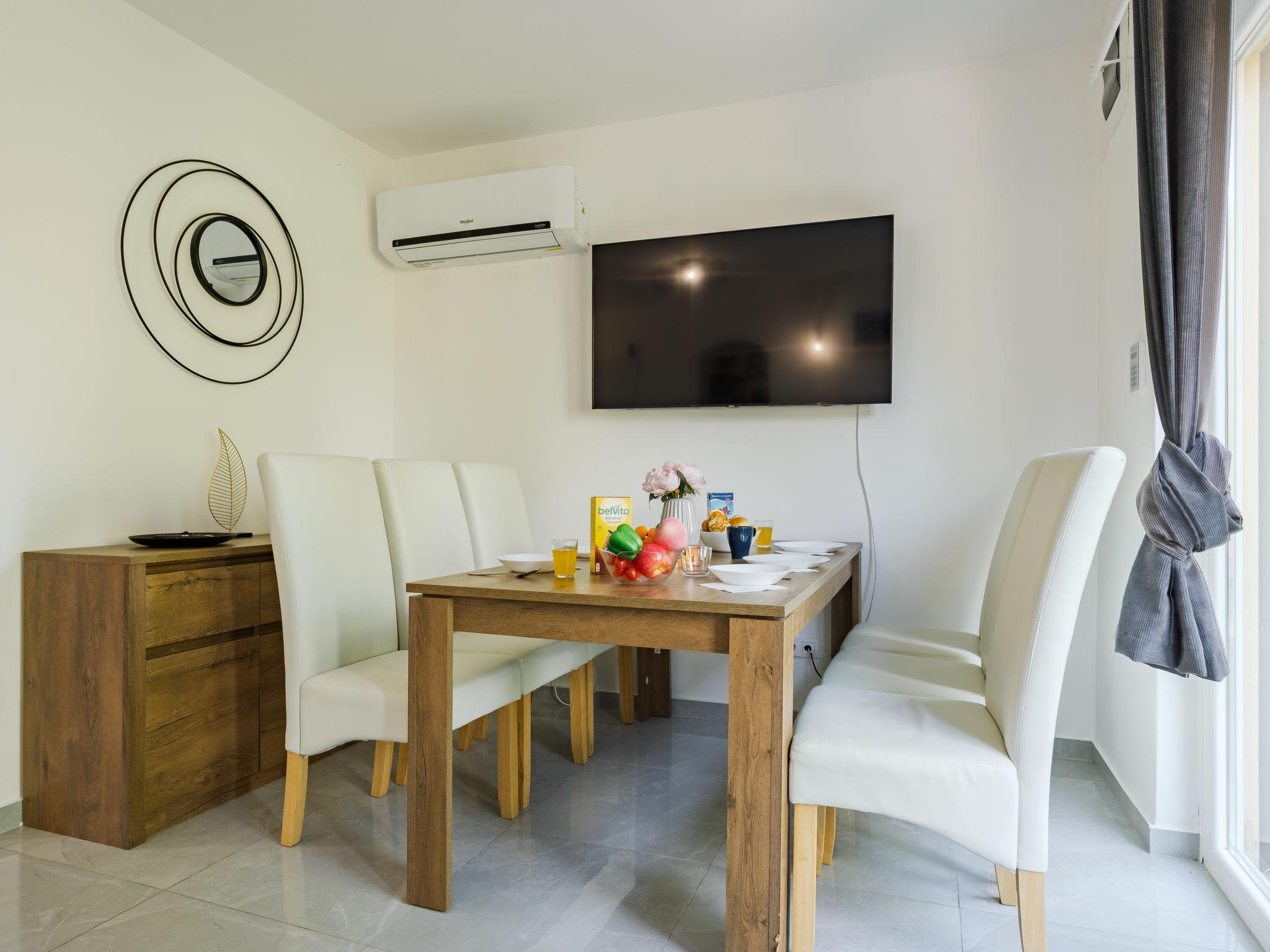 6-room house on 2 levels. Comfortable and modern furnishings: living/dining room with 1 double sofabed (140 cm, length 200 cm), dining table, digital TV, international TV channels and air conditioning. Exit to the terrace. 2 double bedrooms, each room with 1 french bed (160 cm, length 200 cm), digital TV. Open kitchen (oven, 4 ceramic glass hob hotplates, toaster, kettle, microwave, freezer, electric coffee machine). Bath/WC. Heating, air-conditioning. Upper floor: (exterior staircase) dining room with dining table, kitchen corner and air conditioning. 1 double bedroom with 1 french bed (160 cm, length 200 cm), digital TV and international TV channels. 1 room with 2 beds (90 cm, length 200 cm). Small kitchen (2 ceramic glass hob hotplates, toaster, kettle, microwave, freezer, electric coffee machine). Shower/WC. Terrace furniture, barbecue (portable), deck chairs (2). Facilities: sauna (extra), mosquito net, children's high chair, baby cot, hair dryer. Internet (WiFi). MA24093543