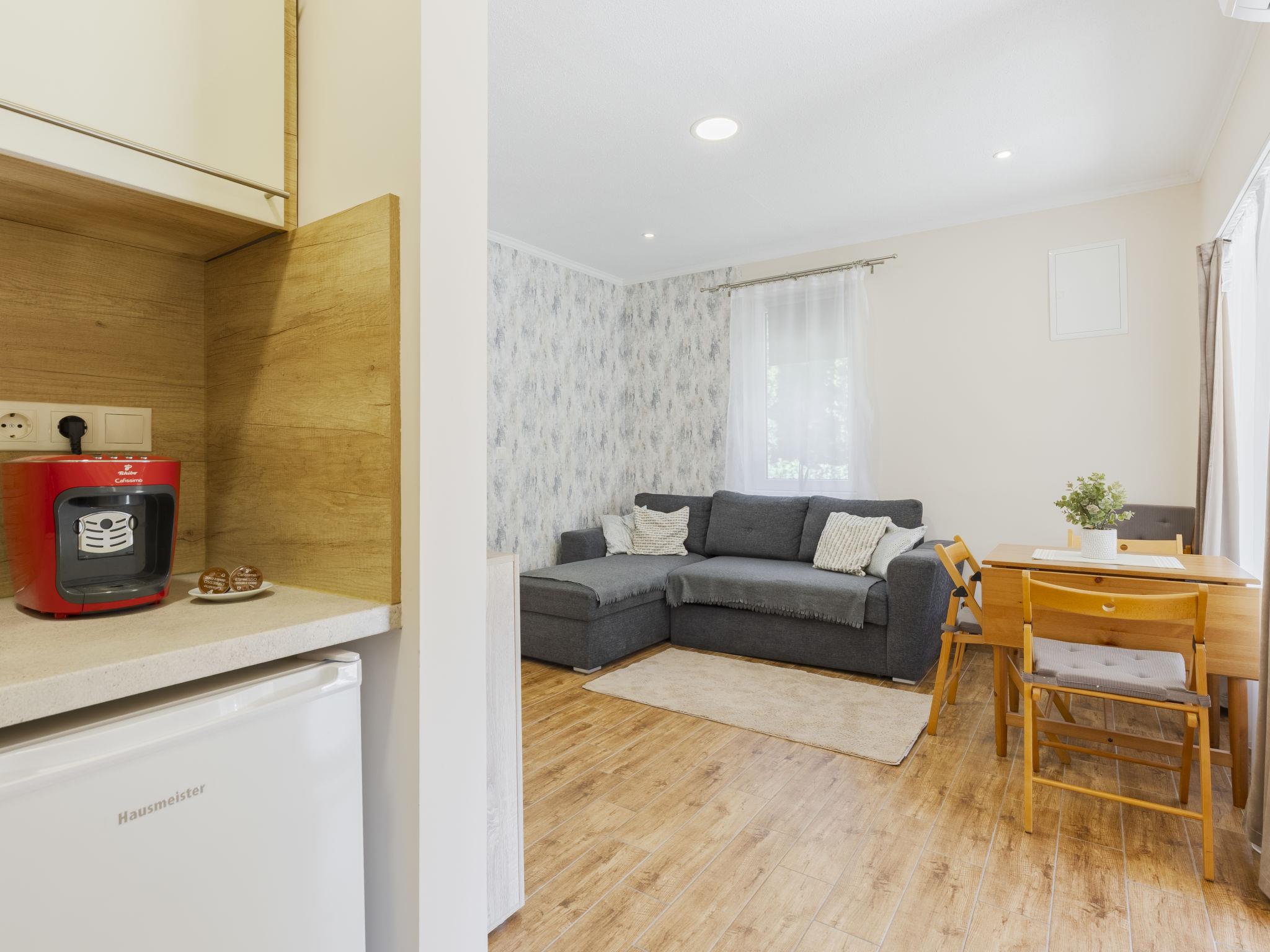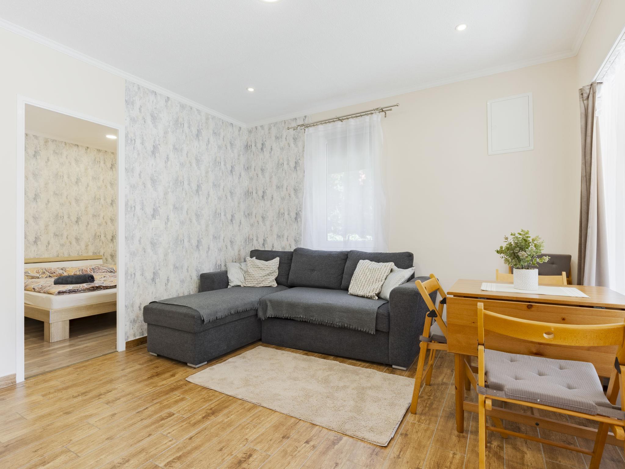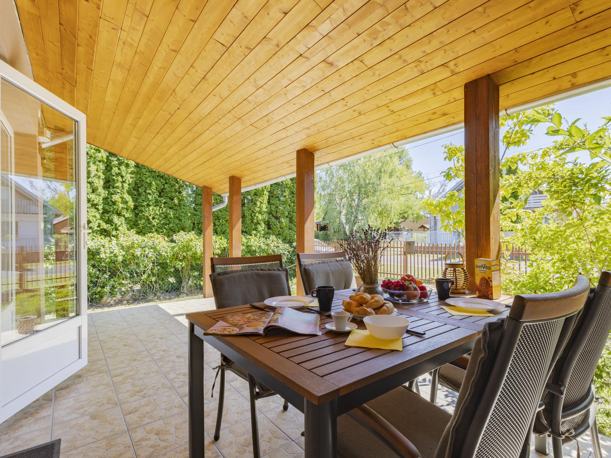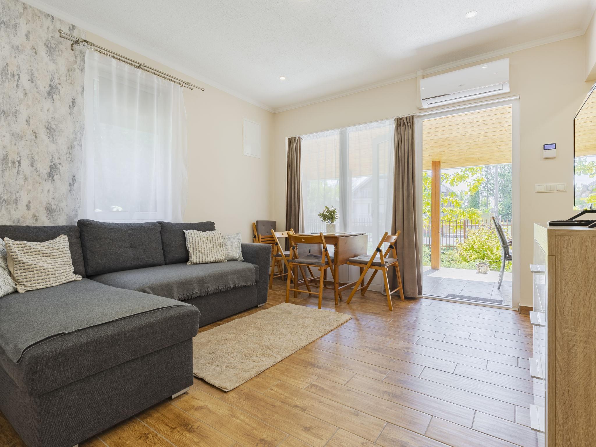 Balatonmáriafürdö 28 km from Balatonlelle: Cosy, comfortable semi-detached house "Wild Grape". In a sunny position in the residential district, 200 m from the lake, 600 m from the beach. Private: hot tub, terrace, barbecue (swing). In the house: WiFi, air conditioning. Parking (for 2 cars) on the premises. Grocery 650 m, restaurant 550 m, bicycle rental 6 km, bus stop "Balatonmáriafürdo, Bükkfa utca" 1.3 km, railway station "Balatonmáriafürdo" 2.5 km, thermal baths "Csisztafürdo" 33 km. Golf course (18 hole) 36 km, tennis 6 km, riding stable 30 km, cycle lane 200 m, children's playground 2 km. Nearby attractions: Kis-Balaton Visitor Center 14 km, Festetics Castle - Keszthely 22 km, Balatonlelle Ferris Wheel 29 km, Siófok Water Tower 62 km, Balaton Museum - Keszthely 18 km, Petting Zoo - Fenyvespuszta 29 km. Please note: railway line closeby 100 m from the property.
