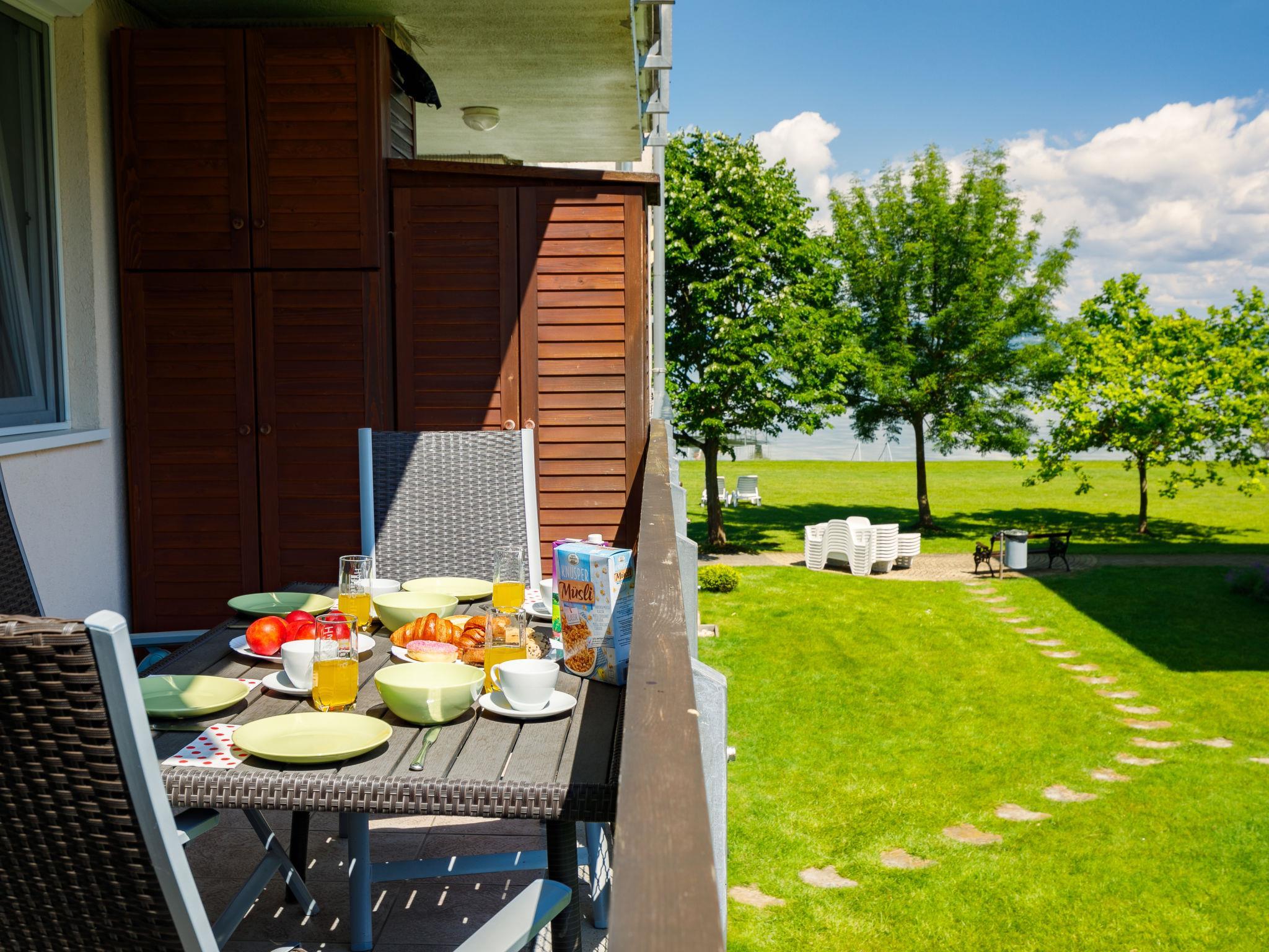 "Amelia", 2-room apartment 47 m2 on 1st floor. Object suitable for 4 adults + 1 child. Comfortable furnishings: entrance hall. Living/sleeping room with 1 pull-out bed (3 pers.), cable TV and air conditioning. Exit to the balcony. 1 room with 1 french bed (180 cm, length 200 cm). Open kitchen (4 hot plates, oven, dishwasher, toaster, kettle, microwave, electric coffee machine) with air conditioning. Shower/WC. Heating, forced-air heating (extra). Balcony 12 m2. Balcony furniture, deck chairs (4). Side view of the lake. Facilities: washing machine, mosquito net, children's high chair, baby cot (extra). Internet (WiFi). Parking.