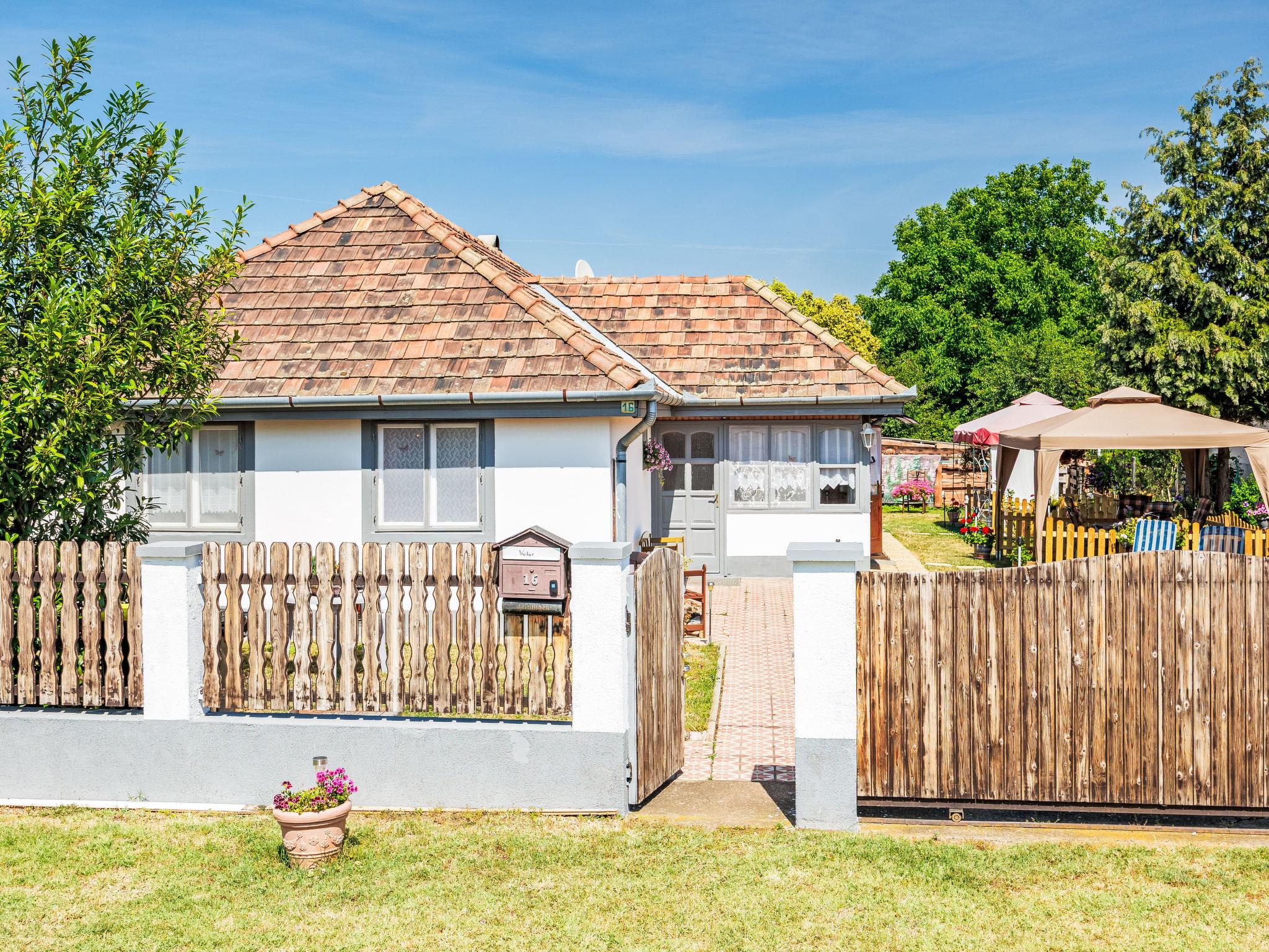 Balatonöszöd 28 km from Siófok: Cosy semi-detached house "Sunny". In a quiet, sunny position, 500 m from the lake, 800 m from the beach. For shared use: garden (fenced) with lawn. Grocery 800 m, supermarket 3 km, restaurant, bar 800 m, bakery 1.8 km, café 800 m, bicycle rental 1.5 km, bus stop 300 m, railway station 1.8 km, grass beach 800 m, thermal baths "Csiszta" 30 km. Surf school 1 km, sailing school 3 km, tennis 4 km, riding stable 12 km, cycle lane, children's playground 600 m, fishing possibilities 800 m. Nearby attractions: Hévíz 60 m, Siófok 28 m, Koröshegyi Lavender Visitor Center 10 m, Bella Theme Park 35 m, Kincsesréti Fishing Lake 6 m. Please note: the owner lives on the same property.
