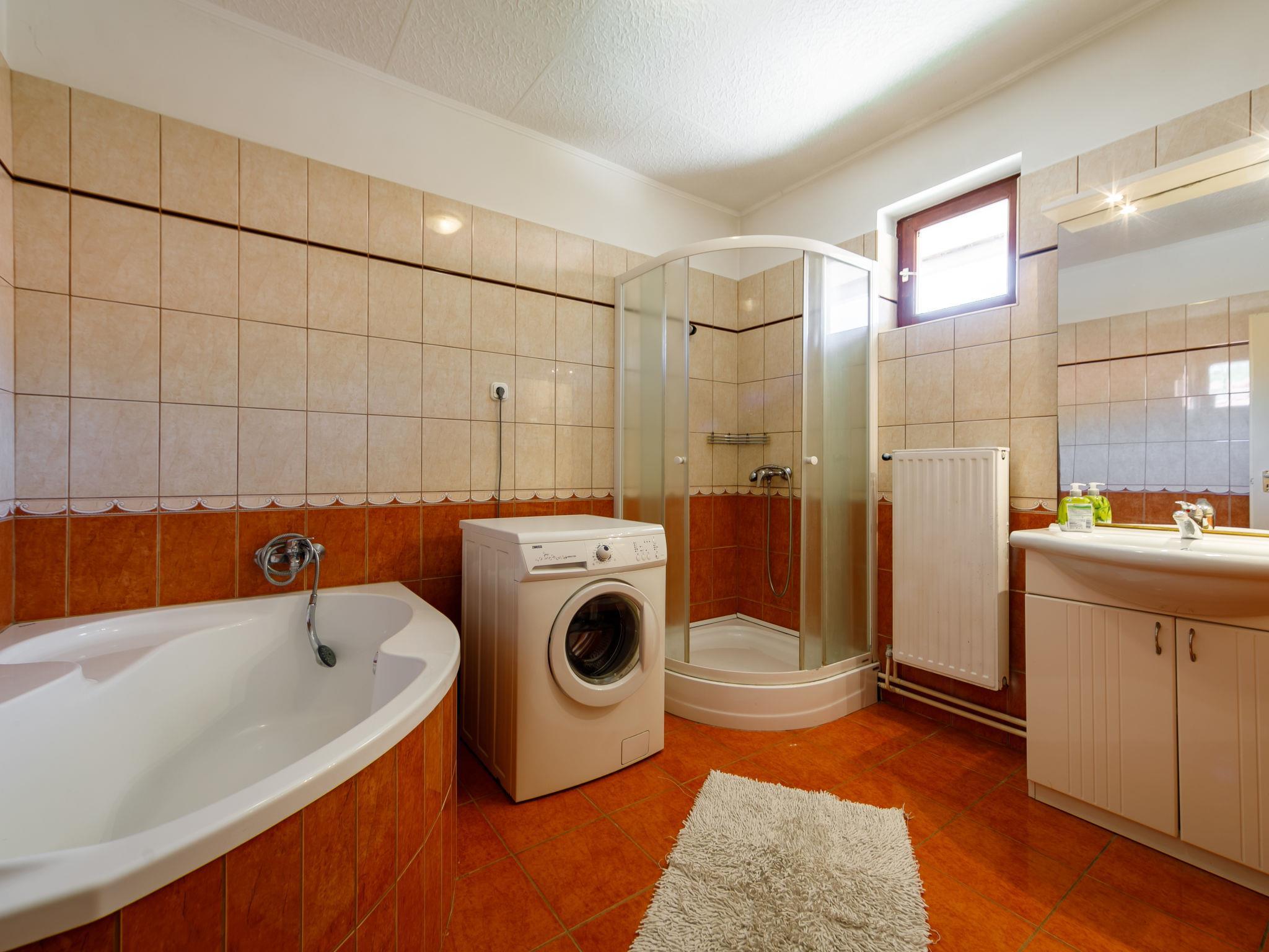 "Scarlett 1", 3-room apartment 100 m2, on the ground floor. Comfortable and beautiful furnishings: living room with satellite TV. 1 room with 3 beds. 1 room with 1 french bed. Open kitchen (4 hot plates, oven, dishwasher, microwave) with dining table. Bath/shower, sep. WC. No heating option. Large terrace 30 m2, patio. Facilities: washing machine, children's high chair, baby cot (extra). Parking (fenced 2 cars). EG19022740