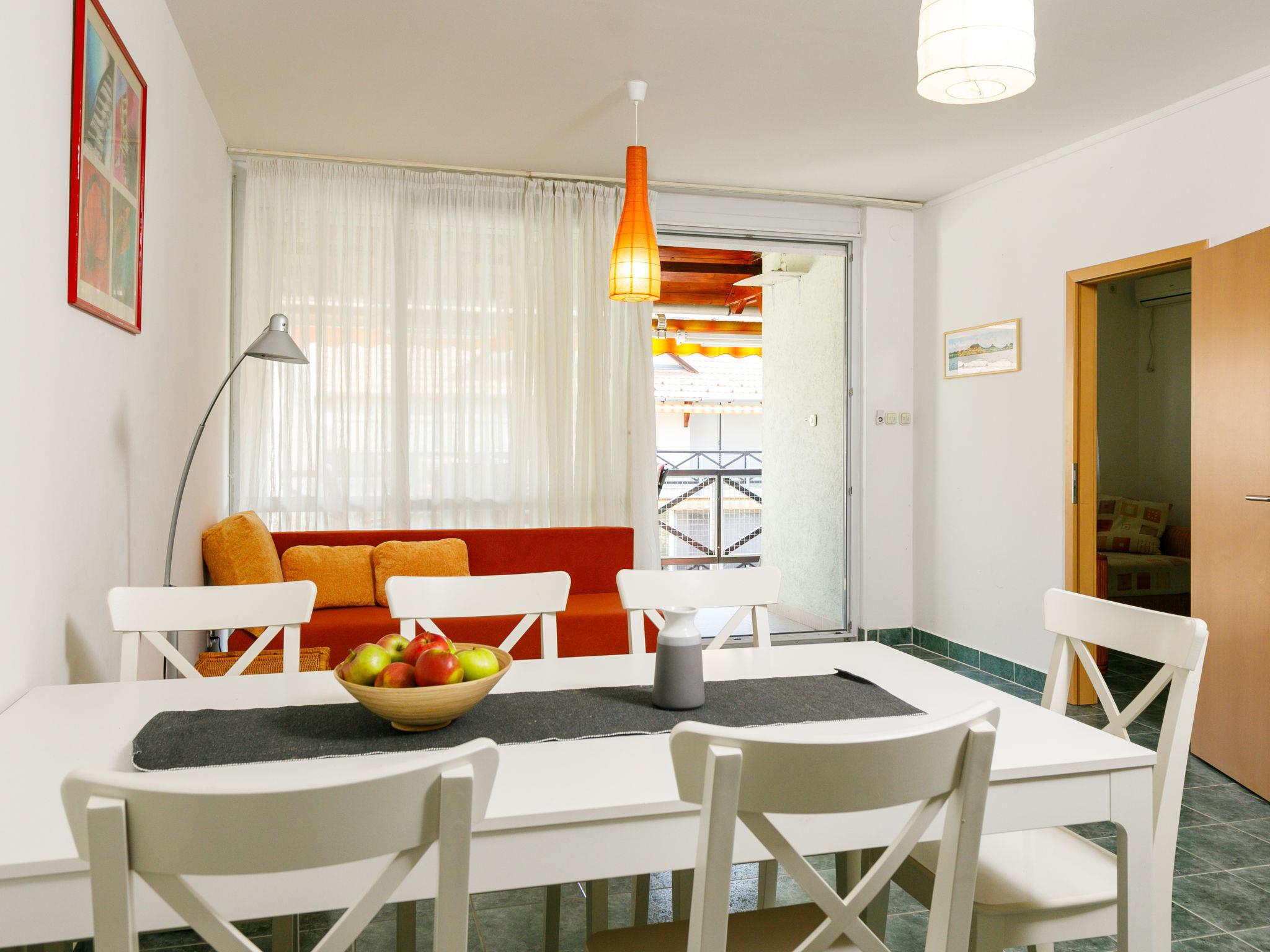 "Pamela", 4-room apartment 99 m2 on 2 levels. Comfortable furnishings: living room with 1 pull-out bed (2 pers.), cable TV and air conditioning. Exit to the balcony. 1 room with 1 pull-out bed (2 pers.). Open kitchen (4 hot plates, oven, dishwasher, freezer). Shower/WC. Heating, floor heating (extra). Upper floor: entrance hall. 1 room with 2 beds. 1 room with 1 french bed and 1 sleeping facility. Shower/WC. Balcony 15 m2. Balcony furniture. Beautiful view of the lake. Facilities: washing machine, children's high chair, baby cot (extra). Internet (WiFi). Parking (fenced).
