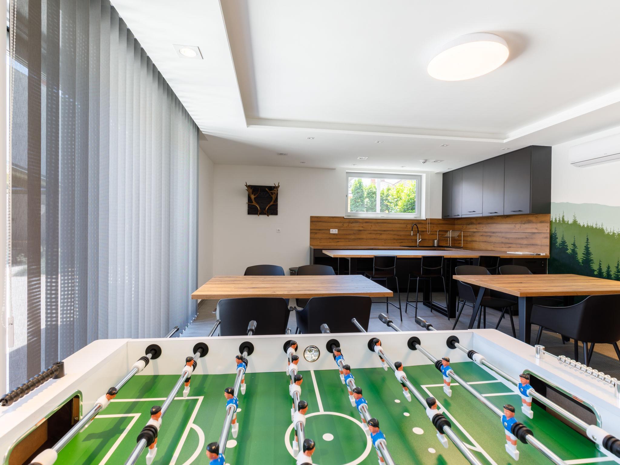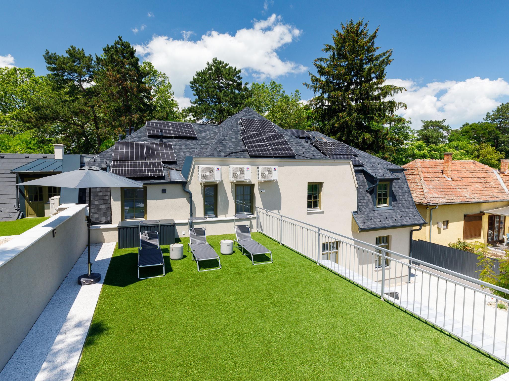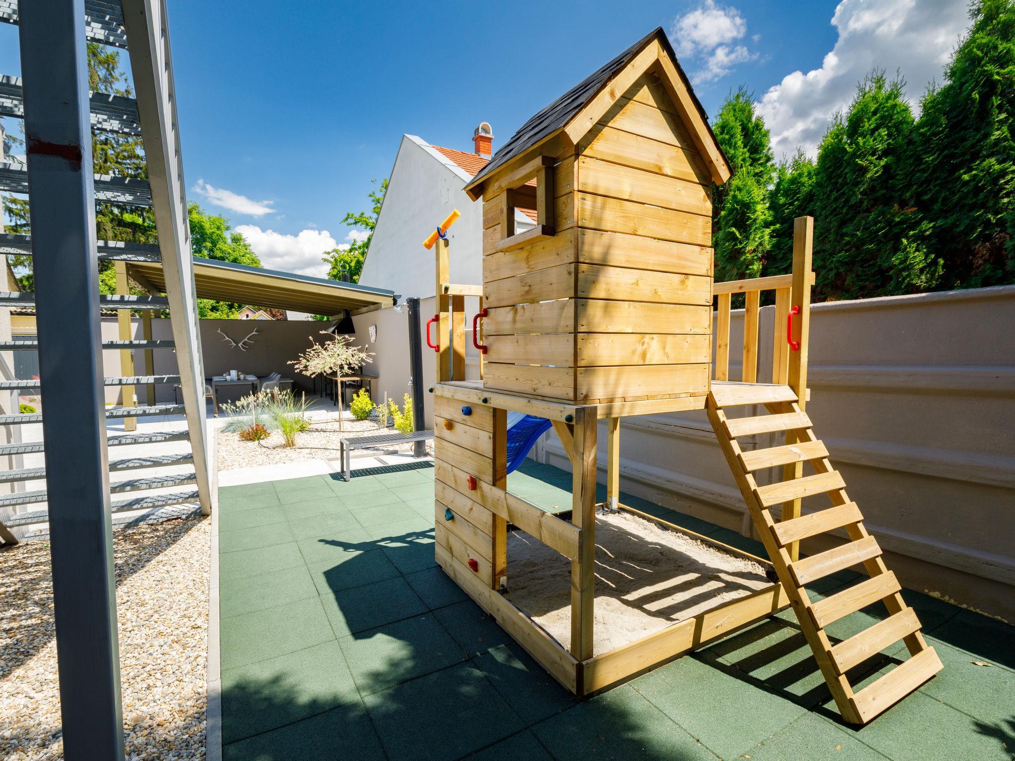 Balatonszárszó 5 km from Balatonföldvár: Modern, beautiful apartment house, built in 2023. 5 apartments in the residence. Excellent location: right in the centre but still quiet, 290 m from the lake, 350 m from the beach. For shared use: property (fenced). Outdoor shower, table tennis, pergola, garden furniture, barbecue, children's playground (slide, sandbox). In the house: WiFi, table tennis, billiard table, table football, sun terrace, central heating system, air conditioning, washing machine, tumble dryer. Breakfast on request (extra). Parking at the house. Grocery 90 m, supermarket 7 km, restaurant, café 140 m, bicycle rental 150 m, bus stop 850 m, railway station, 200 m, thermal baths "Csiszta" 36 km. Surf school 4 km, sailing school 1 km, tennis 500 m, riding stable 9 km, children's playground 600 m. Nearby attractions: Siófok Bella Zoo 24 km, Tihany 12 km, Siófok Theme Pak 24 km, Festetics Castle 57 km, Hévíz 61 m. The common area has a kitchen with a dishwasher, 4 ceramic hobs and an oven.