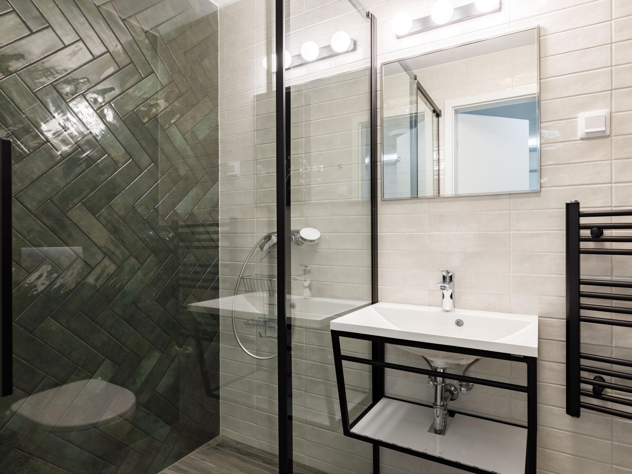 "Park 5", apartment on the upper floor. Beautiful and modern furnishings: open living/dining room with 2 sofabeds and cable TV (flat screen). 1 double bedroom with 1 french bed (160 cm, length 200 cm). Small, open kitchen (2 ceramic glass hob hotplates, microwave, electric coffee machine). Shower/WC. Floor heating. Solar power. North-west facing position. Facilities: children's high chair, baby cot (extra), hair dryer. Internet (WiFi). Please note: apartment courtyard side. Type of coffee machine: Nespresso.