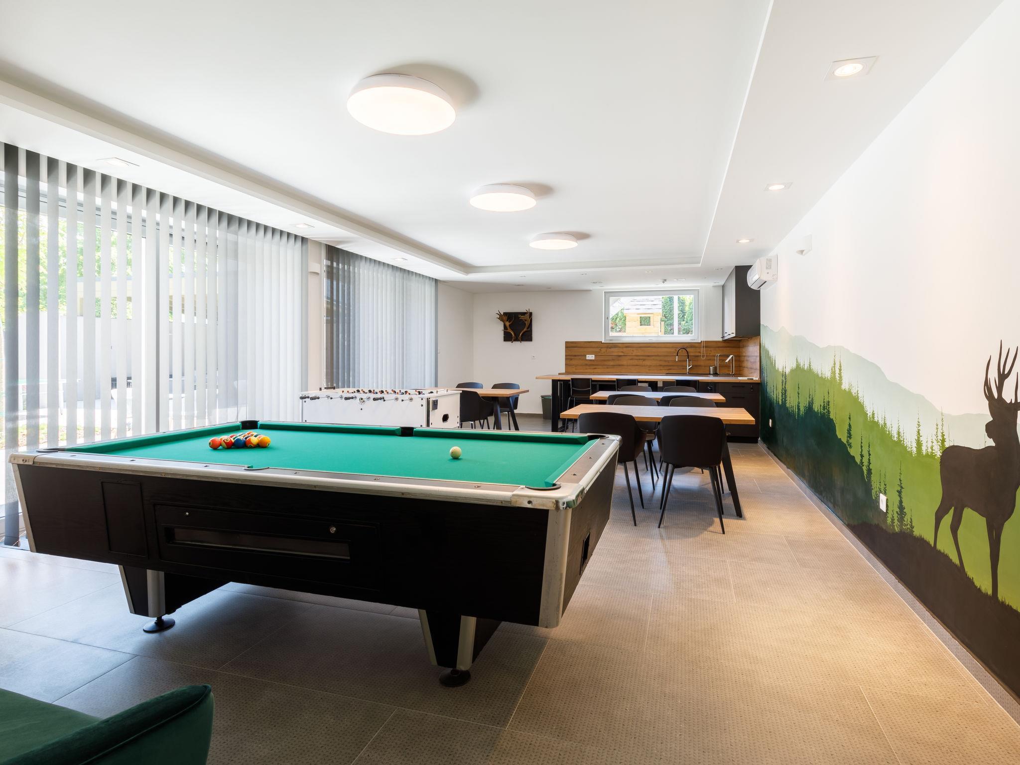 Balatonszárszó 5 km from Balatonföldvár: Modern, beautiful apartment house, built in 2023. 5 apartments in the residence. Excellent location: right in the centre but still quiet, 290 m from the lake, 350 m from the beach. For shared use: property (fenced). Outdoor shower, table tennis, pergola, garden furniture, barbecue, children's playground (slide, sandbox). In the house: WiFi, table tennis, billiard table, table football, sun terrace, central heating system, air conditioning, washing machine, tumble dryer. Breakfast on request (extra). Parking at the house. Grocery 90 m, supermarket 7 km, restaurant, café 140 m, bicycle rental 150 m, bus stop 850 m, railway station, 200 m, thermal baths "Csiszta" 36 km. Surf school 4 km, sailing school 1 km, tennis 500 m, riding stable 9 km, children's playground 600 m. Nearby attractions: Siófok Bella Zoo 24 km, Tihany 12 km, Siófok Theme Pak 24 km, Festetics Castle 57 km, Hévíz 61 m. The common area has a kitchen with a dishwasher, 4 ceramic hobs and an oven.