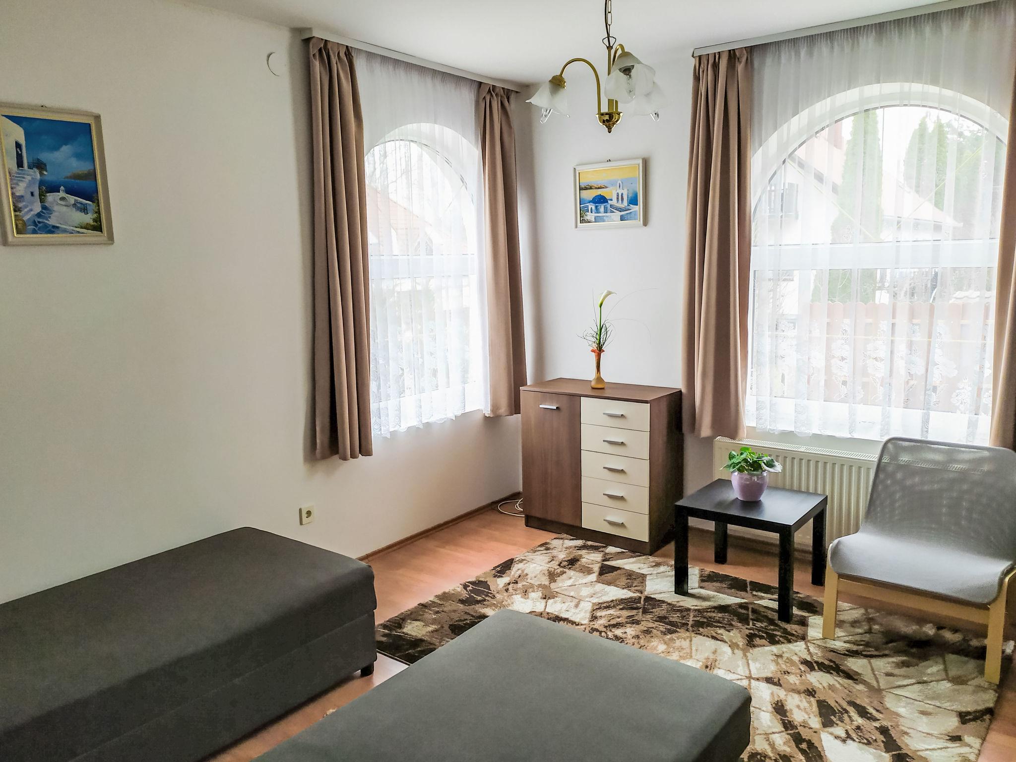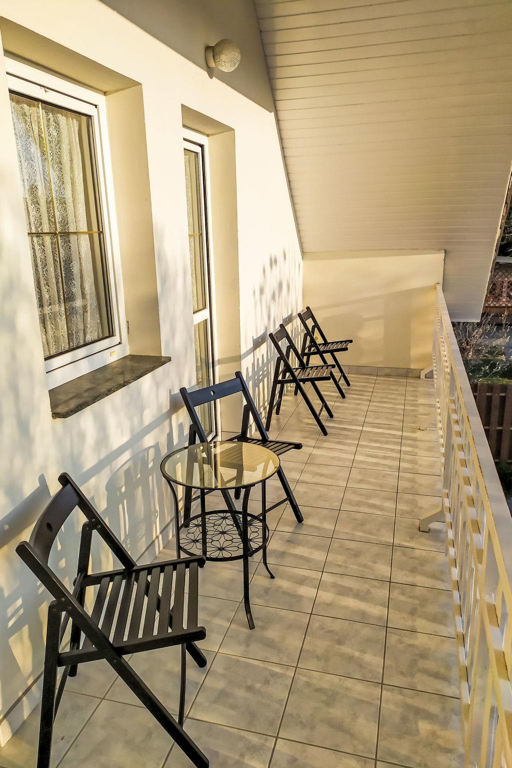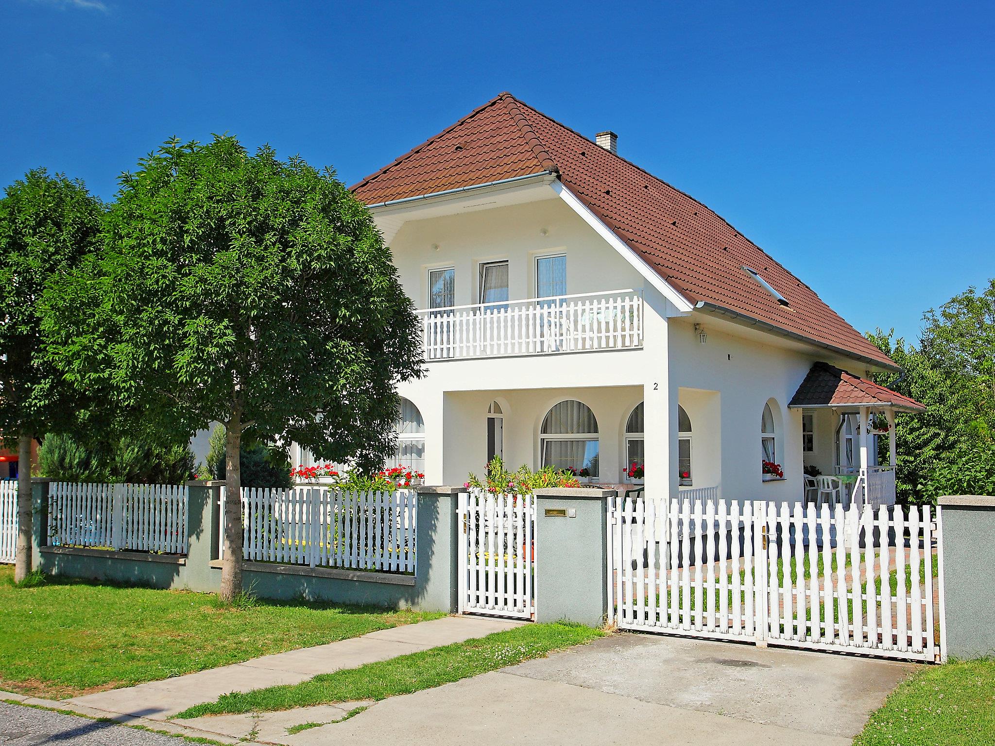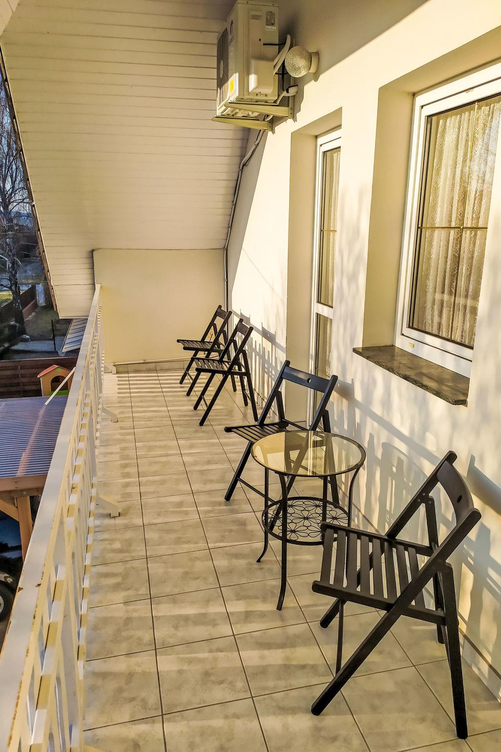Balatonszárszó 20 km from Siófok: Large, cosy house "Goliath", 2 storeys. In a quiet, sunny position, 500 m from the lake, 1 km from the beach. For shared use: fireplace. Private: property 500 m2 (fenced). In the house: WiFi, air conditioning. Grocery, restaurant 500 m, sandy beach 800 m, grass beach 500 m. Children's playground 500 m. Please note: baby equipment on request (included). The owner does not accept any youth groups. The owner lives on the same property.