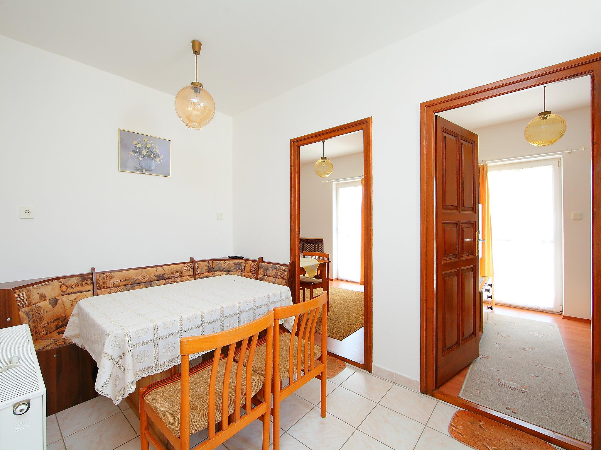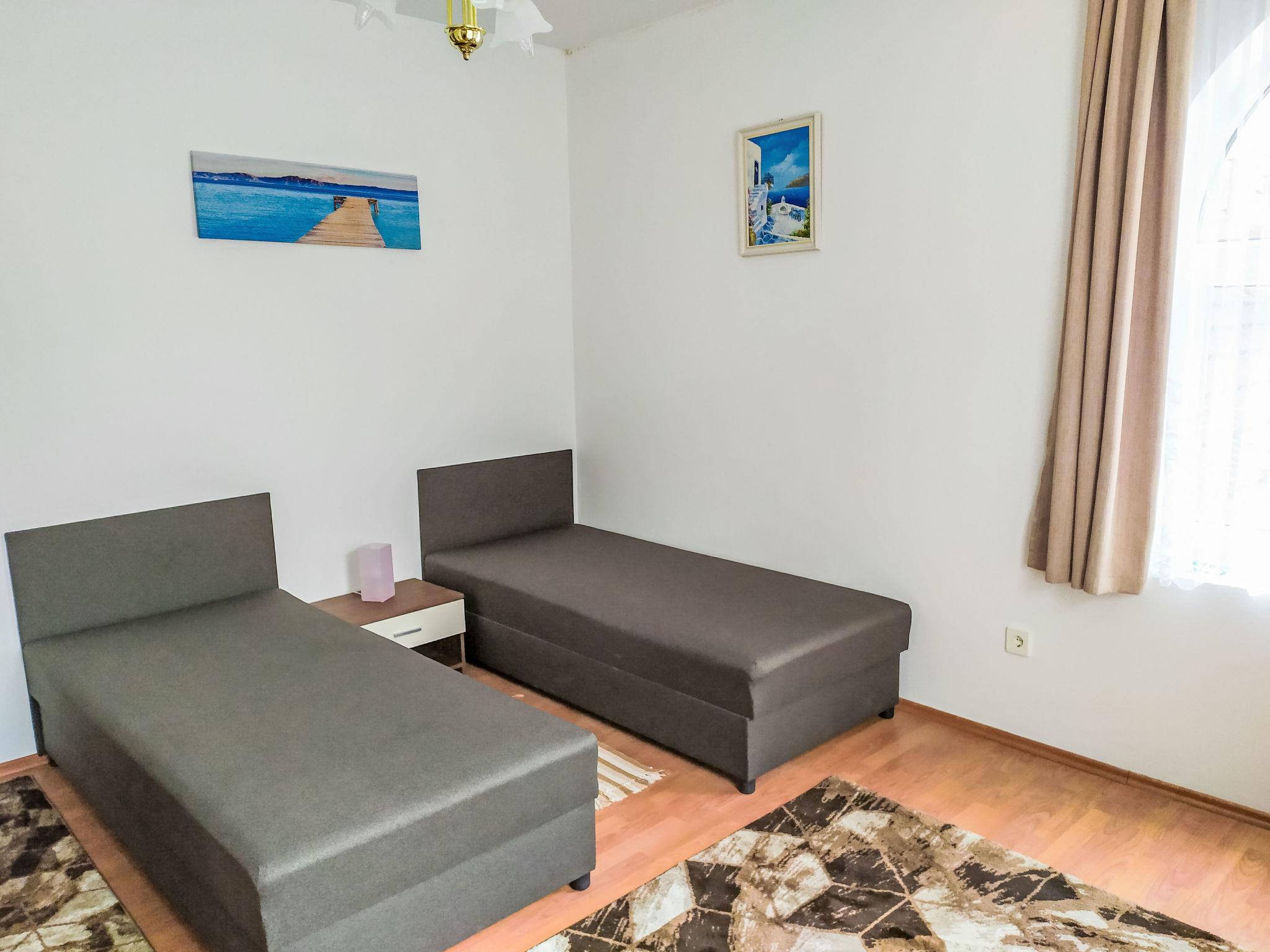9-room house 160 m2. Spacious, partly renovated in 2025, practical furnishings: living room with digital TV. Exit to the terrace. 1 room with 2 beds and air conditioning. 1 room with 2 beds. Open kitchen (4 hot plates, oven, microwave) with dining table. Bath/WC, sep. WC. No heating option. Upper floor: dining room with digital TV. 4 rooms, each room with 2 beds. Exit to the balcony. 1 room with 2 beds and air conditioning. Open kitchen (4 hot plates, oven, microwave). 3 showers/WC. Terrace. Terrace furniture, balcony furniture. Facilities: iron, mosquito net, children's high chair, baby cot, hair dryer. Internet (WiFi). Parking (fenced 6 cars). MA19010307