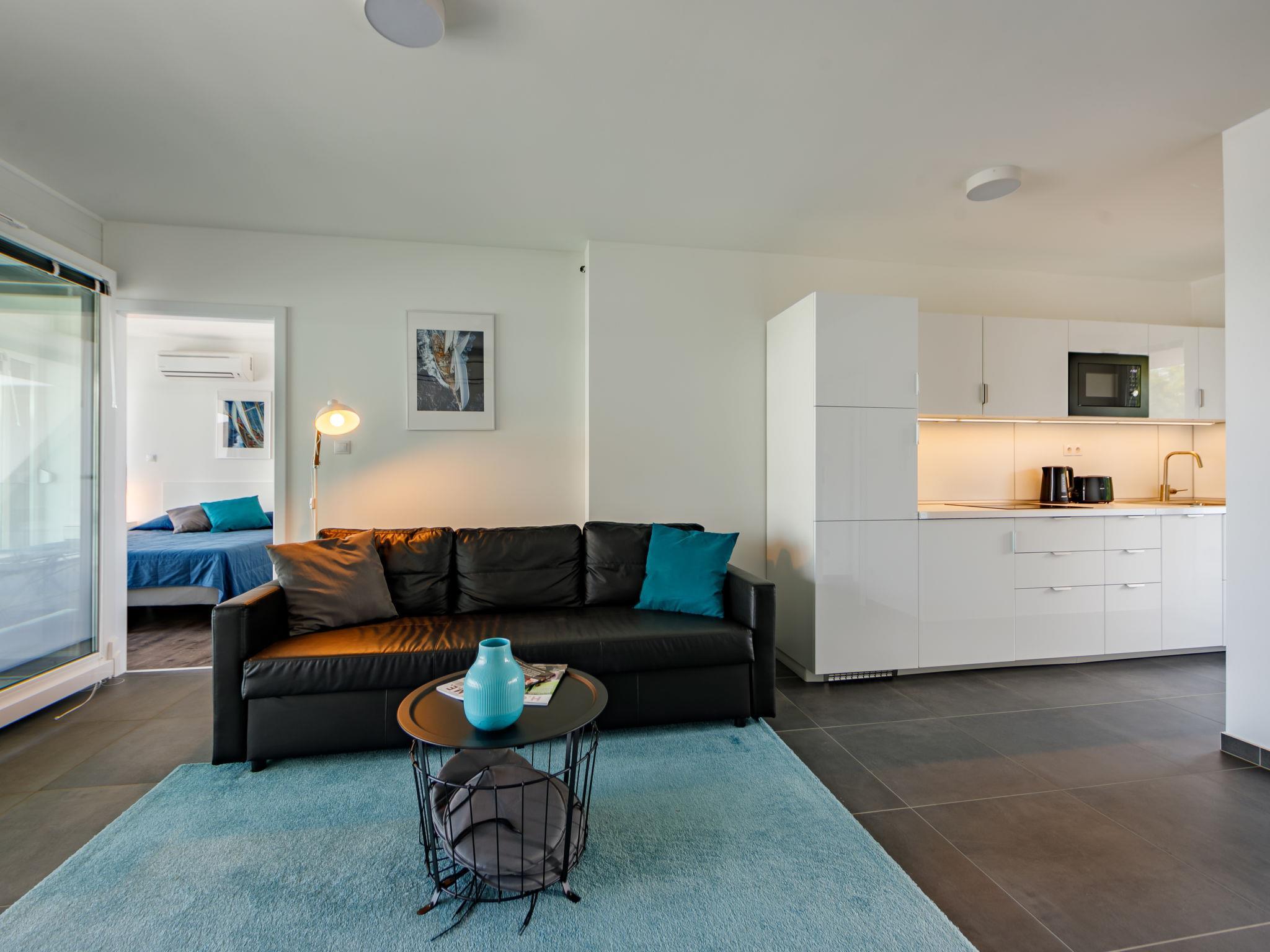 "Fuzfo", 3-room apartment 56 m2 on 3rd floor. Modern and tasteful furnishings: living/sleeping room with 1 pull-out bed (2 pers.), cable TV and air conditioning. Exit to the terrace. 2 rooms, each room with 1 french bed. Open kitchen (oven, dishwasher, toaster, kettle). 2 showers/WC, sep. WC. Heating, floor heating. Terrace 11 m2. Terrace furniture. Facilities: children's high chair, baby cot (extra). Parking (1 car). Maximum 1 pet/ dog allowed. EG21000354