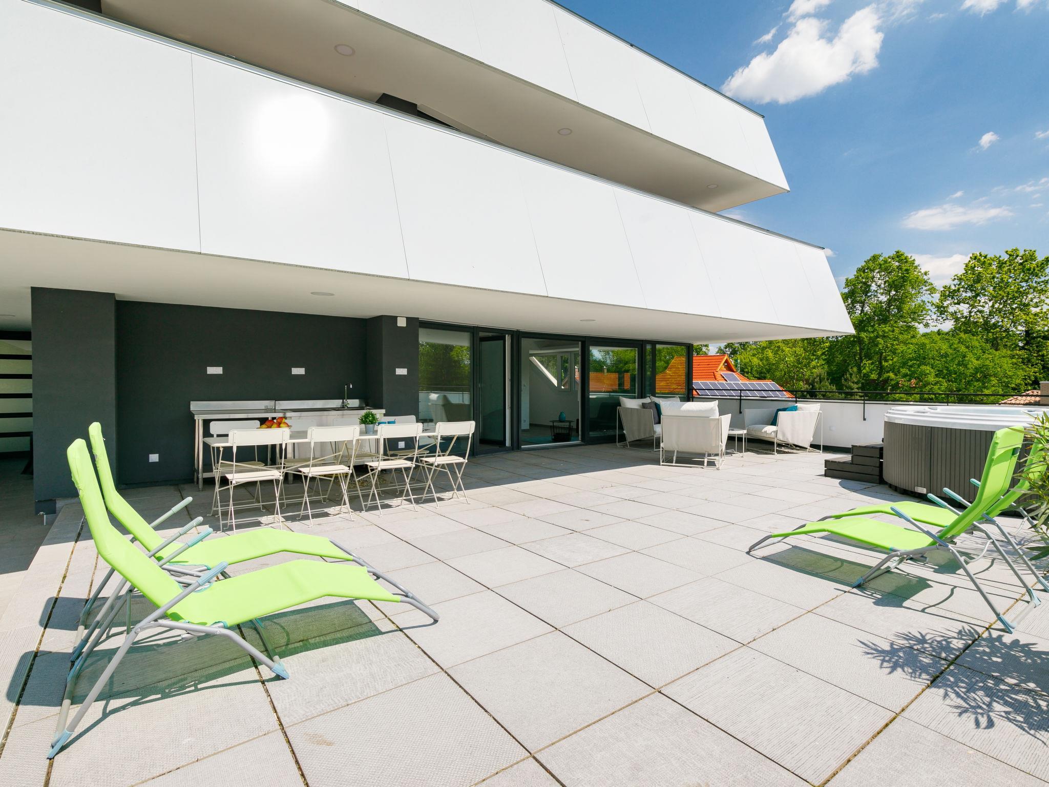 Balatonszemes 7 km from Balatonlelle: Modern, beautiful apartment block, built in 2020. In the resort, in a central position, 100 m from the lake, 350 m from the beach. For shared use: swimming pool angular heated (8 x 20 m, seasonal availability: 15.May. - 15.Sep.). In the house: internet café, WiFi, lift, sun terrace. Breakfast on request (extra). Grocery 200 m, restaurant 100 m, railway station 450 m, grass beach 300 m. Sports harbour 100 m. Nearby attractions: Tihany 14 km.