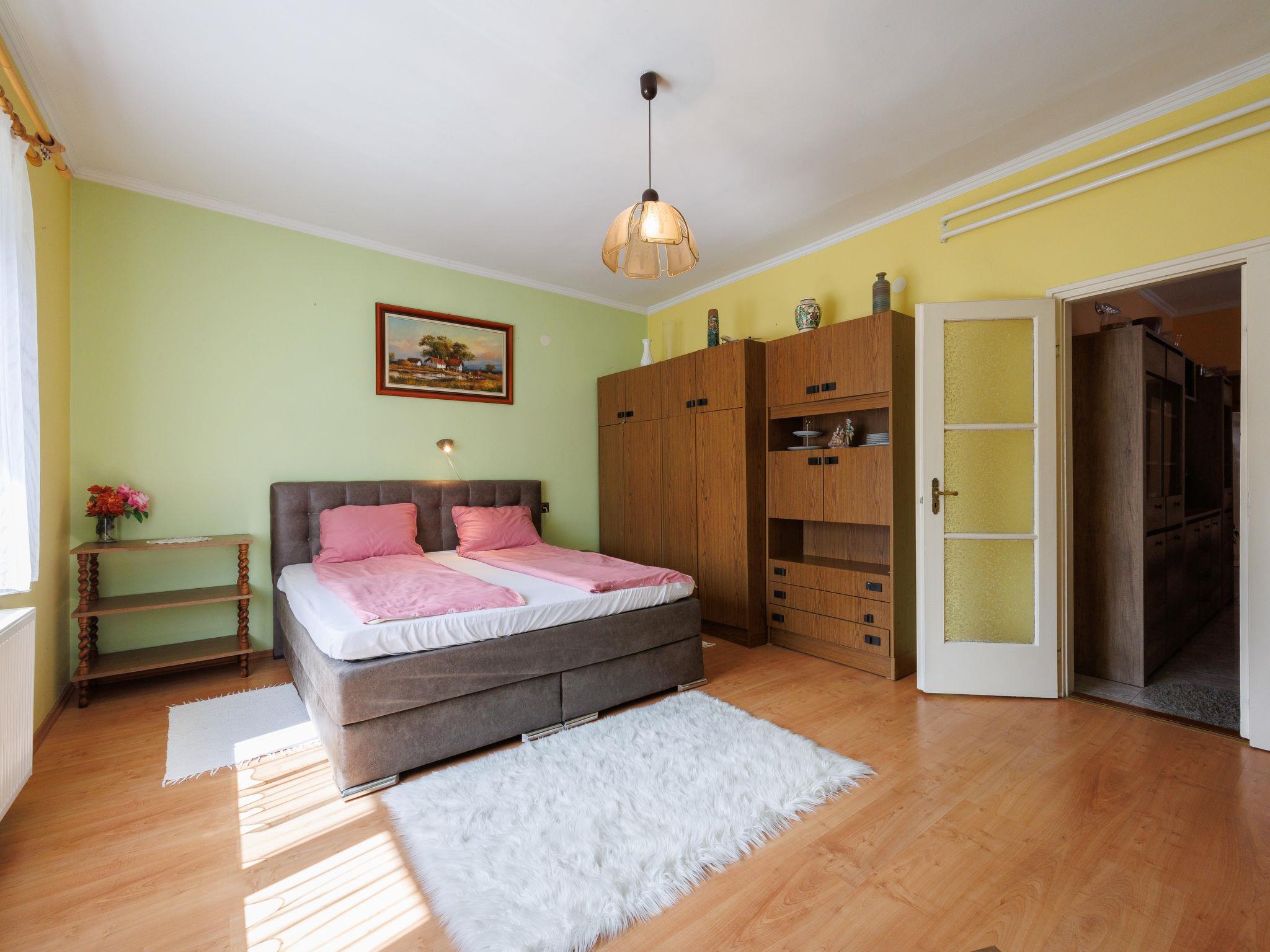 "Gyula", 4-room apartment on the ground floor. Spacious, partly renovated in 2024, comfortable furnishings: open living/dining room with dining table, cable TV, international TV channels and flat screen. Exit to the veranda. 1 large double bedroom with 1 french bed. 2 double bedrooms, each room with 1 french bed. Open kitchen (oven, dishwasher, Gas stove, 4 gas rings, toaster, kettle, microwave, electric coffee machine). Bath/shower, sep. WC. No heating option. Terrace furniture. Facilities: Internet (WiFi). Parking (2 cars). MA23062507