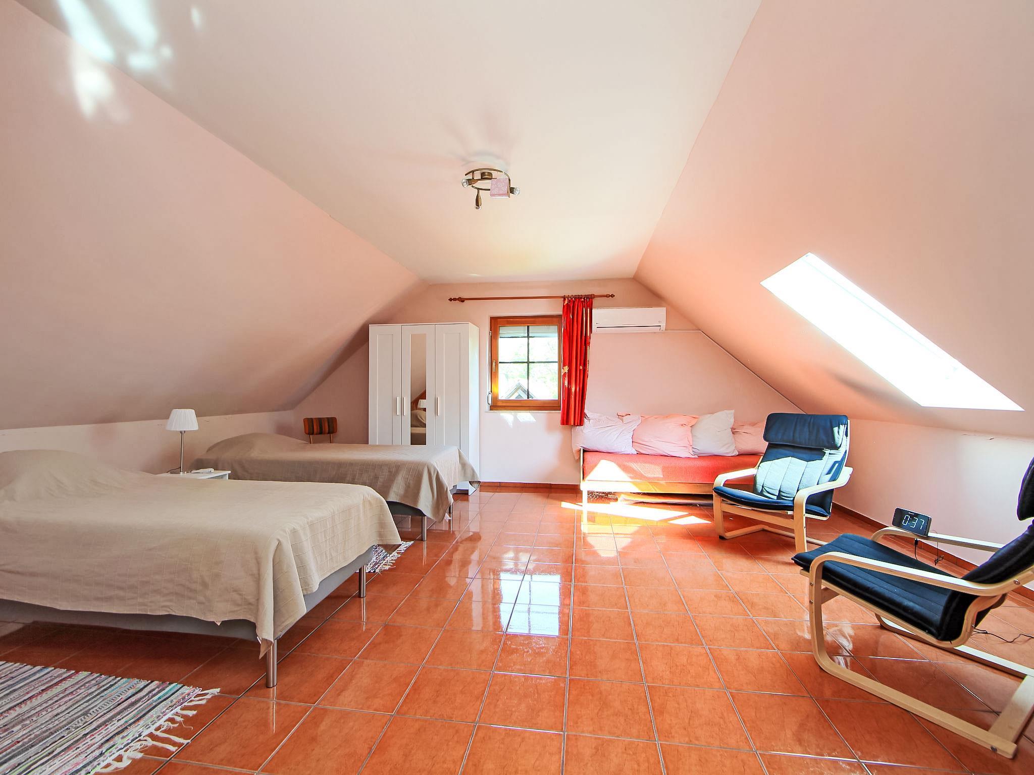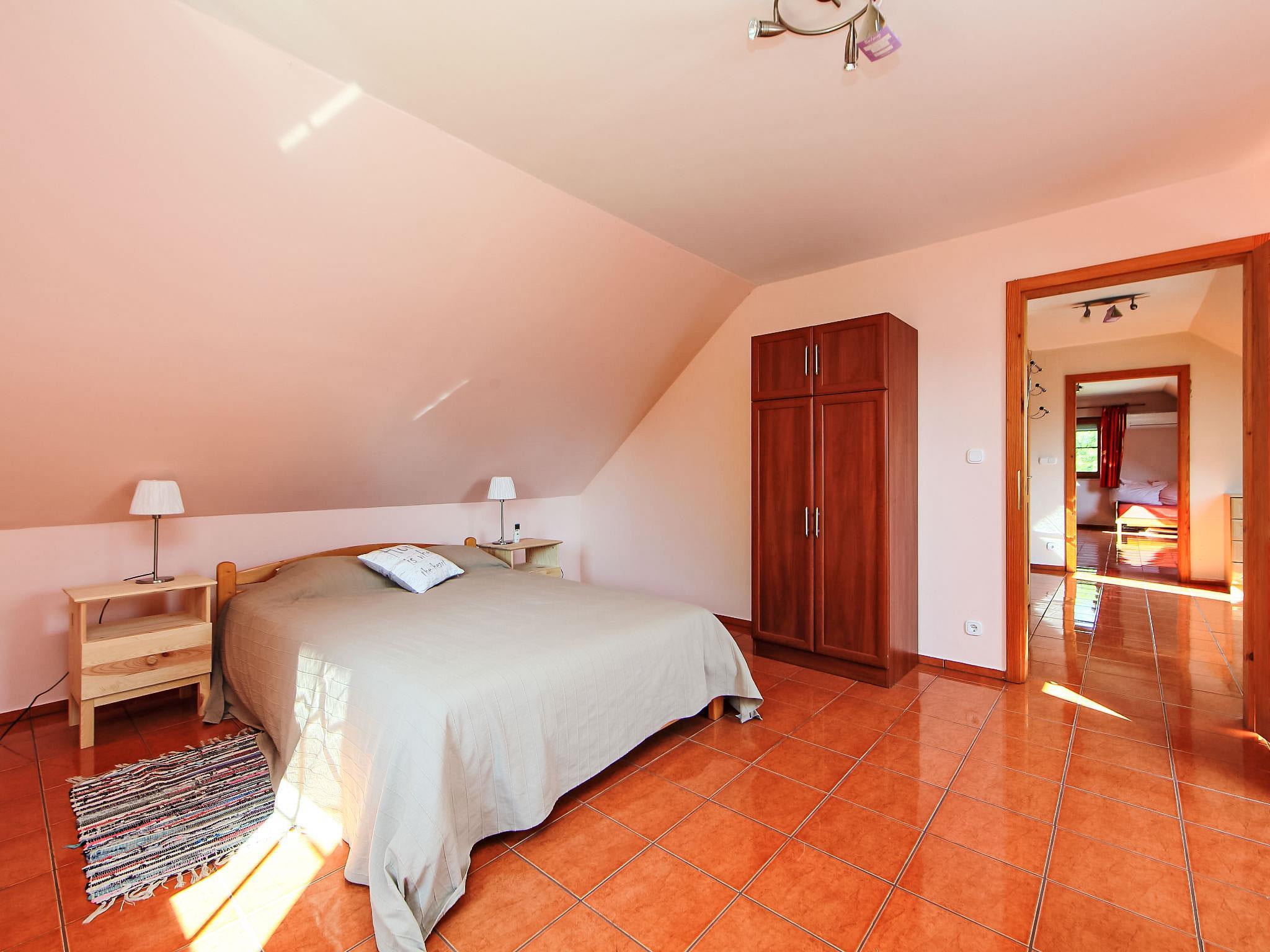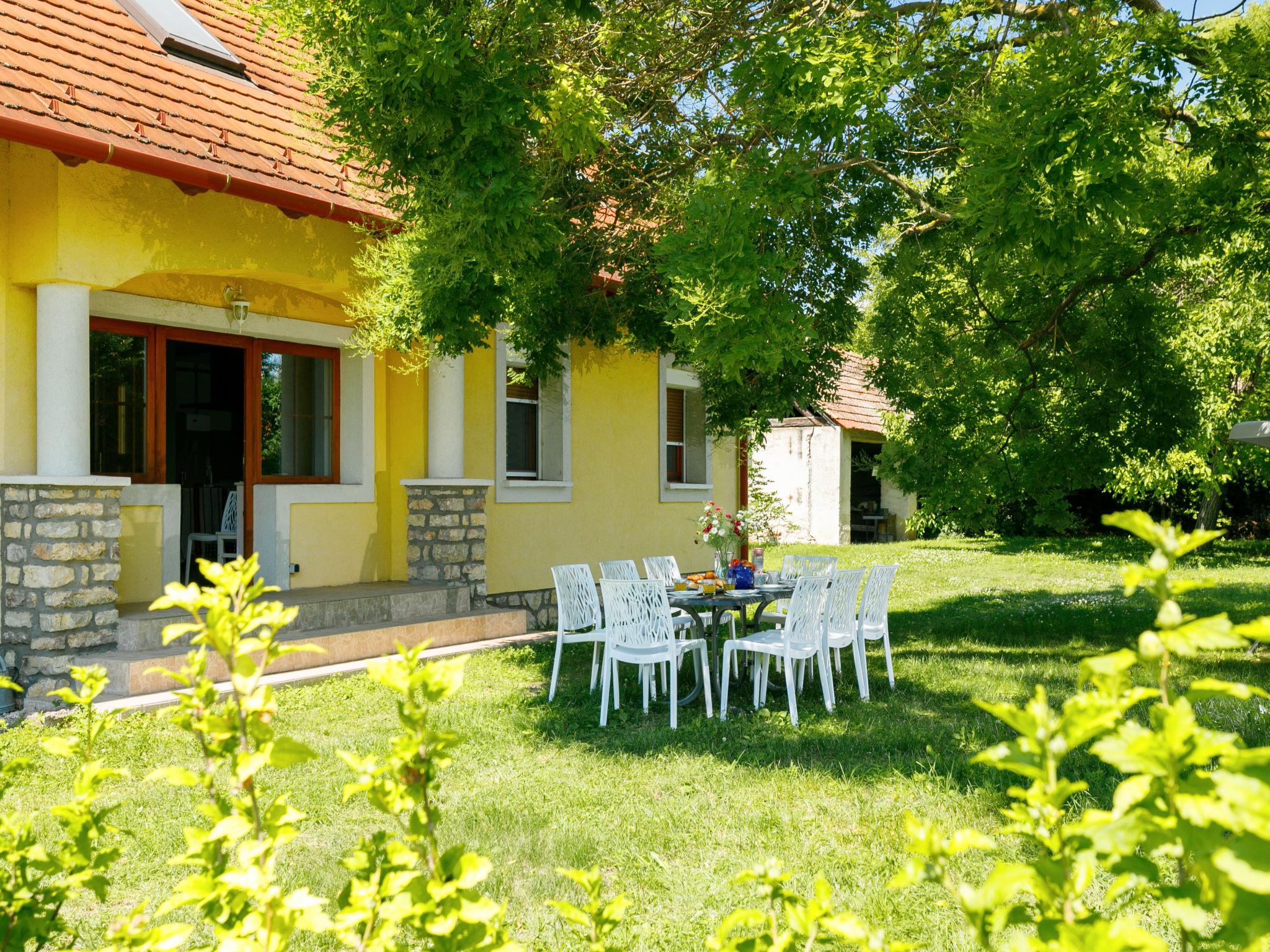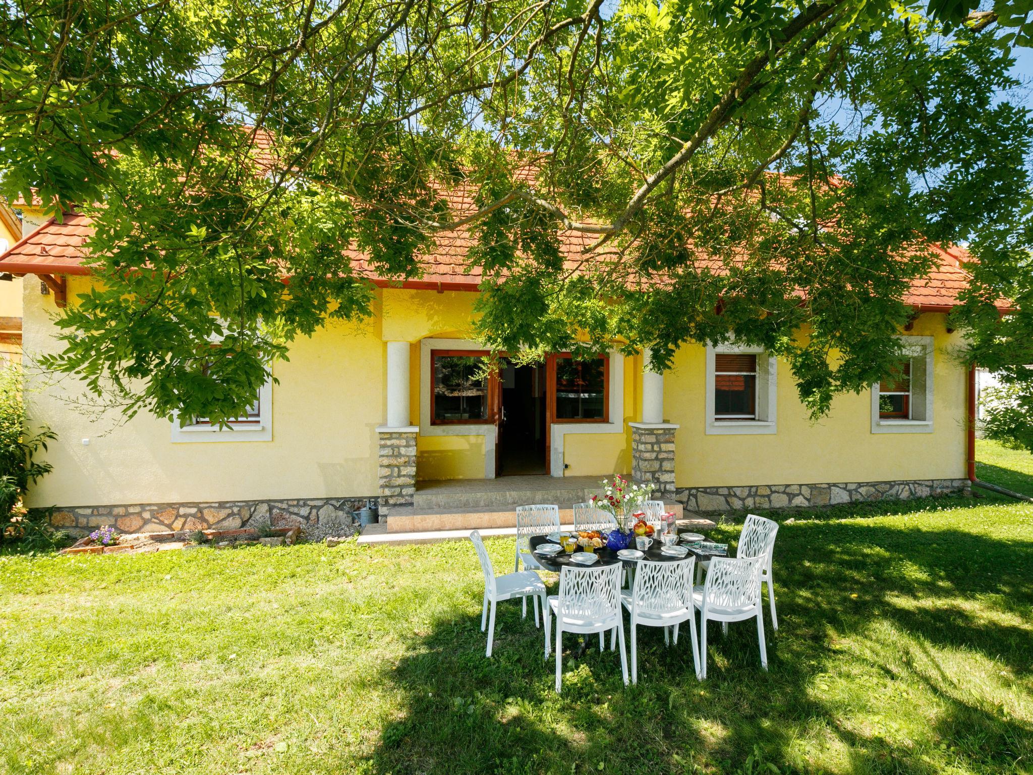 Balatonudvari 8 km from Balatonfüred: Cosy semi-detached house "Golf Tee", 2 storeys, built in 2006. In the resort, 400 m from the lake, 550 m from the beach, in a cul-de-sac. For shared use: property 800 m2 (fenced). Private: garden 600 m2 with trees. (sandbox). In the house: WiFi, central heating system, air conditioning, washing machine. E-charging station. Grocery 600 m, supermarket 8 km, restaurant 600 m, bicycle rental 2 km, bus stop "Balatonudvari" 400 m, railway station "Balatonudvari" 300 m, ferry "Tihany" 10 km, grass beach 500 m, indoor swimming pool 8 km, thermal baths "Hévíz" 58 km. Golf course (18 hole) 1 km, indoor tennis centre 8 km, riding stable 7 km, sports centre 8 km, cycle lane 100 m, children's playground 550 m. Nearby attractions: Forrás Sports Park 8 km, Annagora Aquapark 8 km, BalatonBob Theme Park 30 km, Badacsony 29 km, Keszthely, Festetics Castle 53 km, Balaton Golf Club - Balatonudvari 1 km. Groups of teenagers on request only. The keys‘ handover takes place by the agency Interhome in Balatonfüred, 10 km.