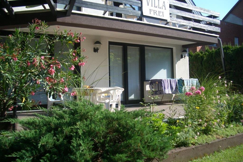 Set in a beautiful, well-kept garden, our guests will find a very nice, well-maintained apartment with a terrace or balcony. The apartment offers enough space for 4 guests and features 2 bedrooms, 1 bathroom, and a kitchen with a dining area. We only accommodate families and couples. Prices are valid for a minimum stay of 1 week. An extra bed is available per apartment for an additional charge.