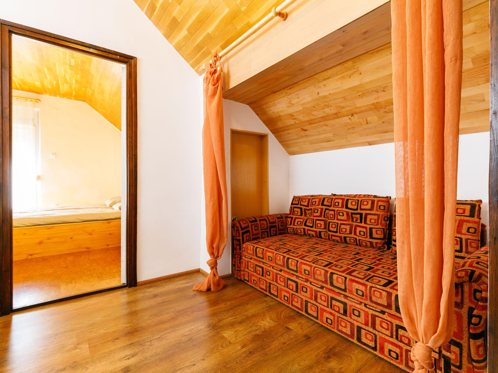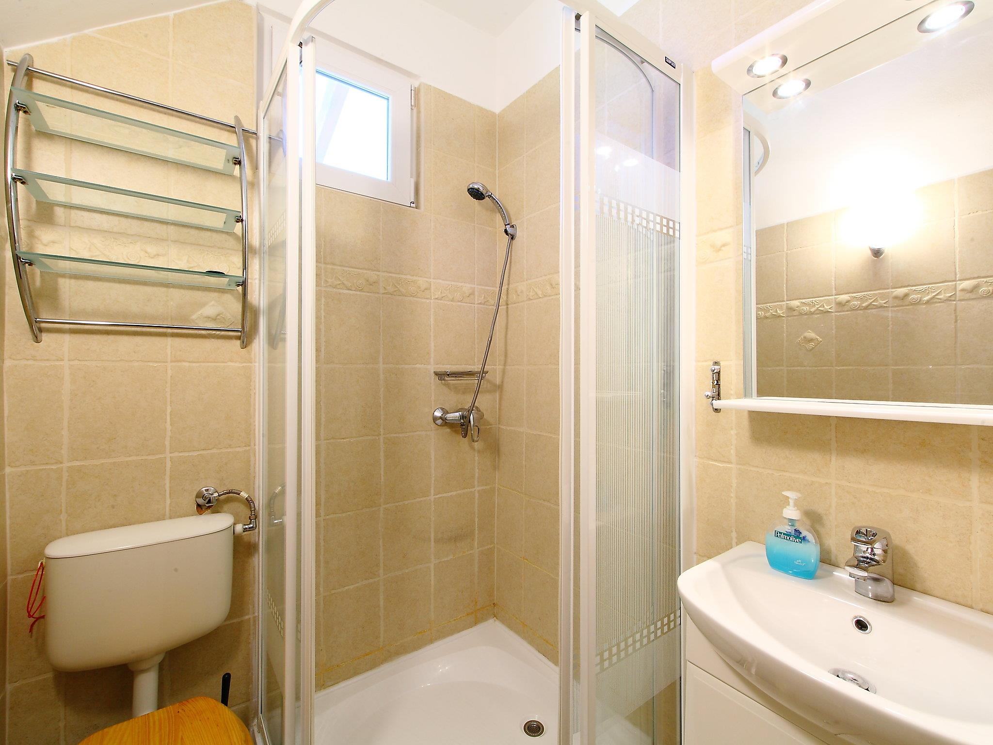 4-room semi-detached house 85 m2 on 2 levels. Comfortable furnishings: living/sleeping room with 1 double sofabed and TV. Exit to the terrace. Kitchen (3 hot plates, oven, dishwasher, microwave). Shower, sep. WC. No heating option. Upper floor: entrance hall with 1 bed (100 cm, length 160 cm). 1 room with 1 french bed (200 cm, length 200 cm). Exit to the balcony. 1 room with 1 pull-out bed (2 pers.). Exit to the balcony. Shower/WC. 2 balconies, 2 terraces. Terrace furniture, deck chairs. Parking (fenced 2 cars).