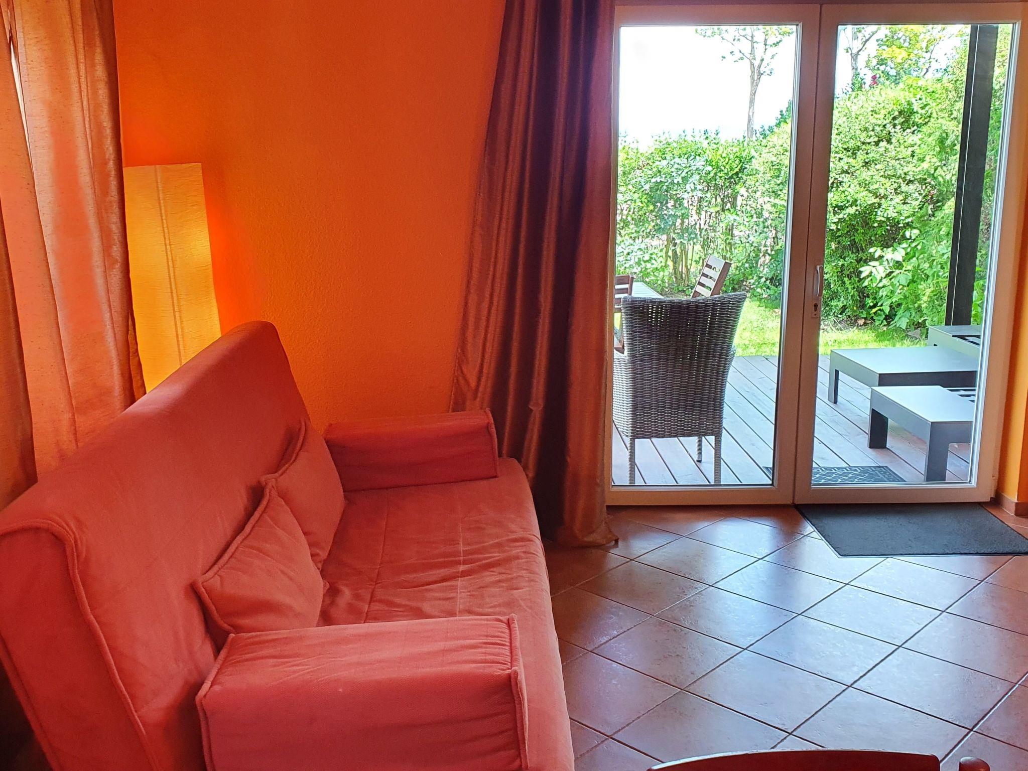 This 60m² apartment is on the ground floor and can accommodate six people. It has two bedrooms each with a double bed (140cm wide). The living room has a sitting corner with satellite TV, a double sofa bed (140cm wide) and a dining table for four people. There are two bathrooms, one with a shower and the other with a bath. Each also has a toilet. The cooking corner is equipped with a gas hob (two rings), oven, dishwasher, washing machine, fridge, microwave and coffee machine. The apartment is also equipped with an alarm system, wireless Internet access, underfloor heating and air conditioning in the living room.